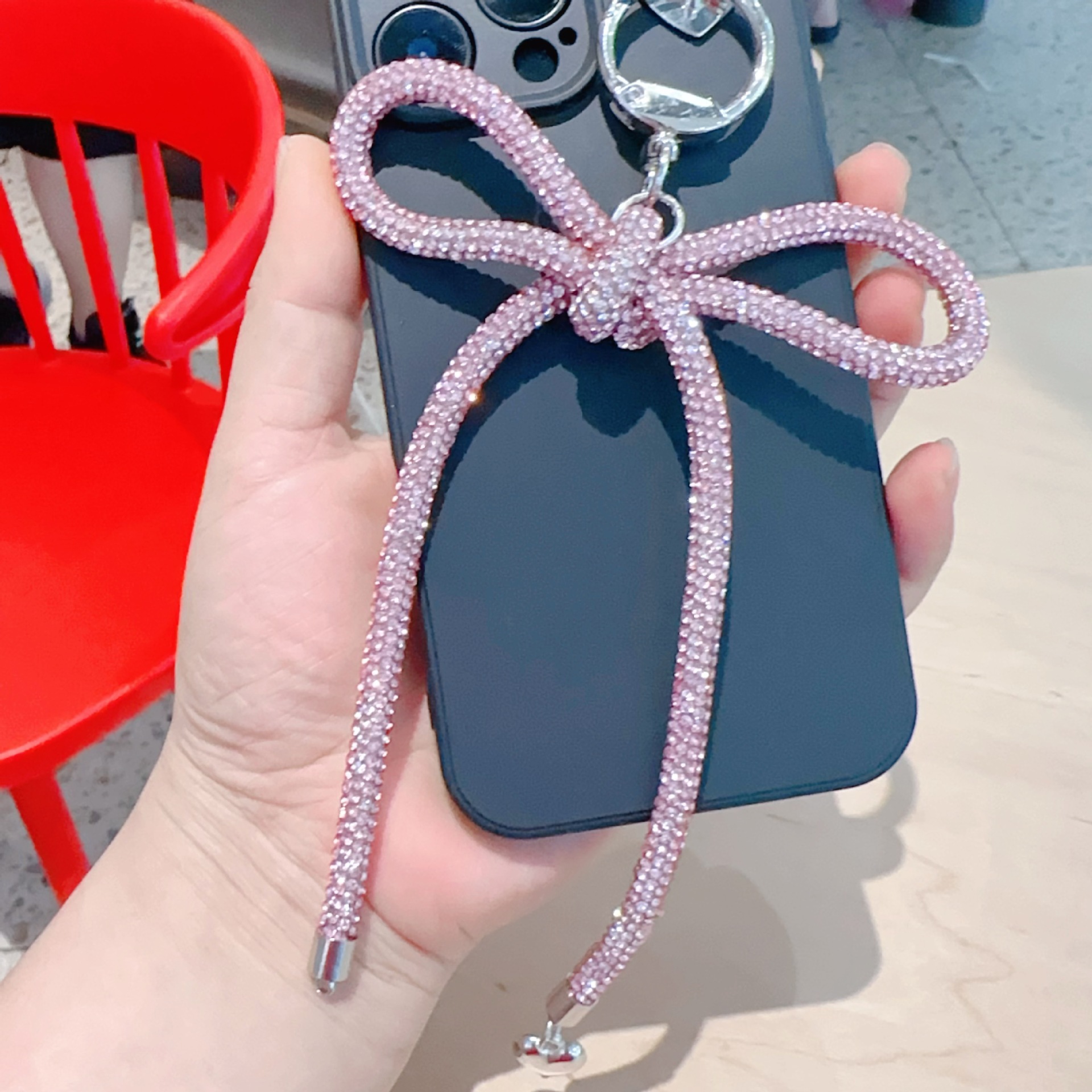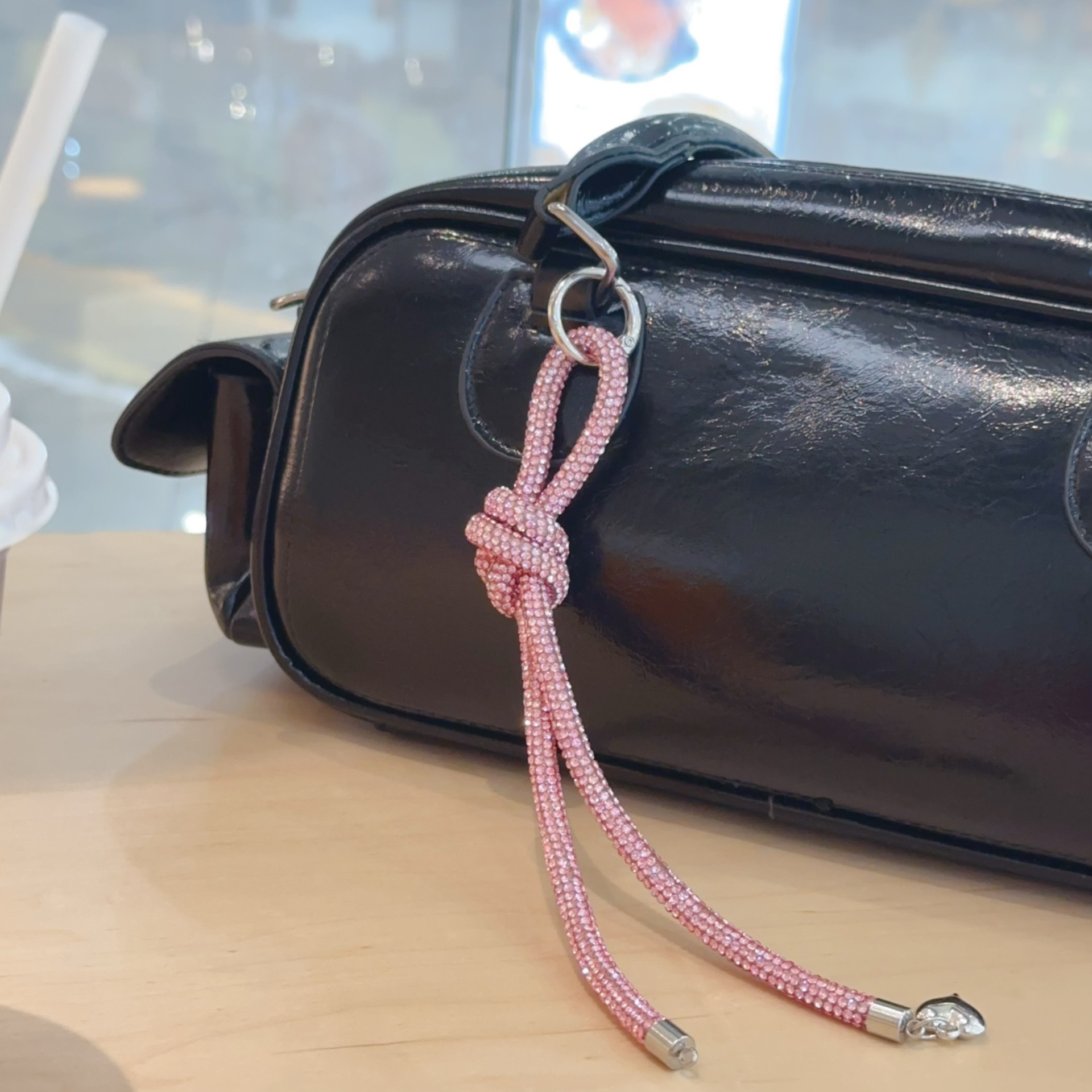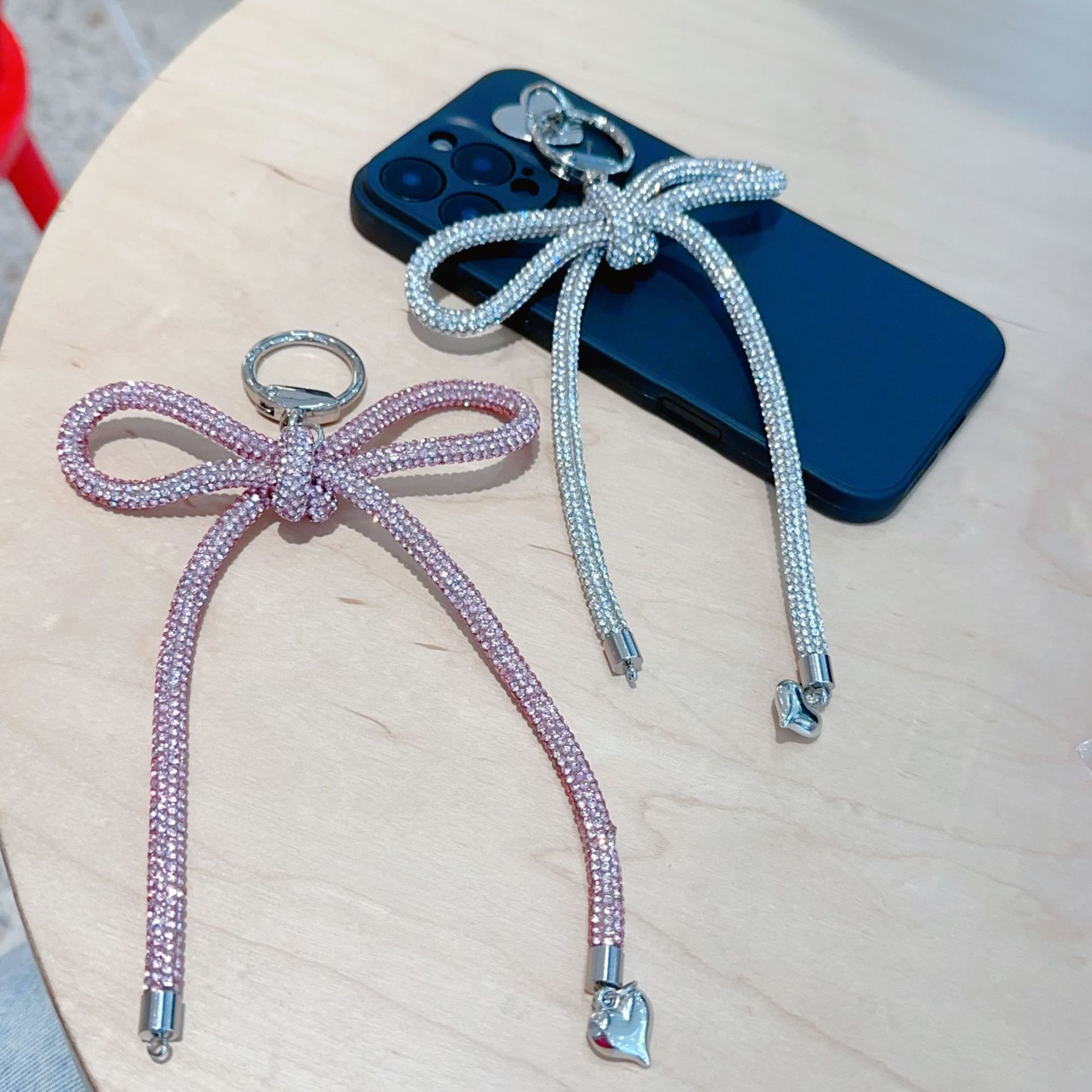 diamond rope bowknot bag pendant-pink