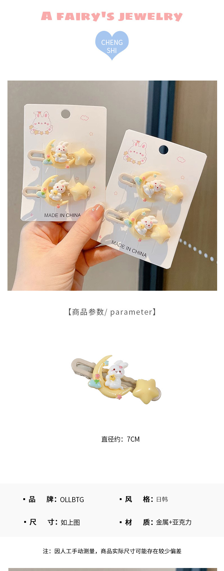 1# moon bunny xingx duckbill barrettes single.