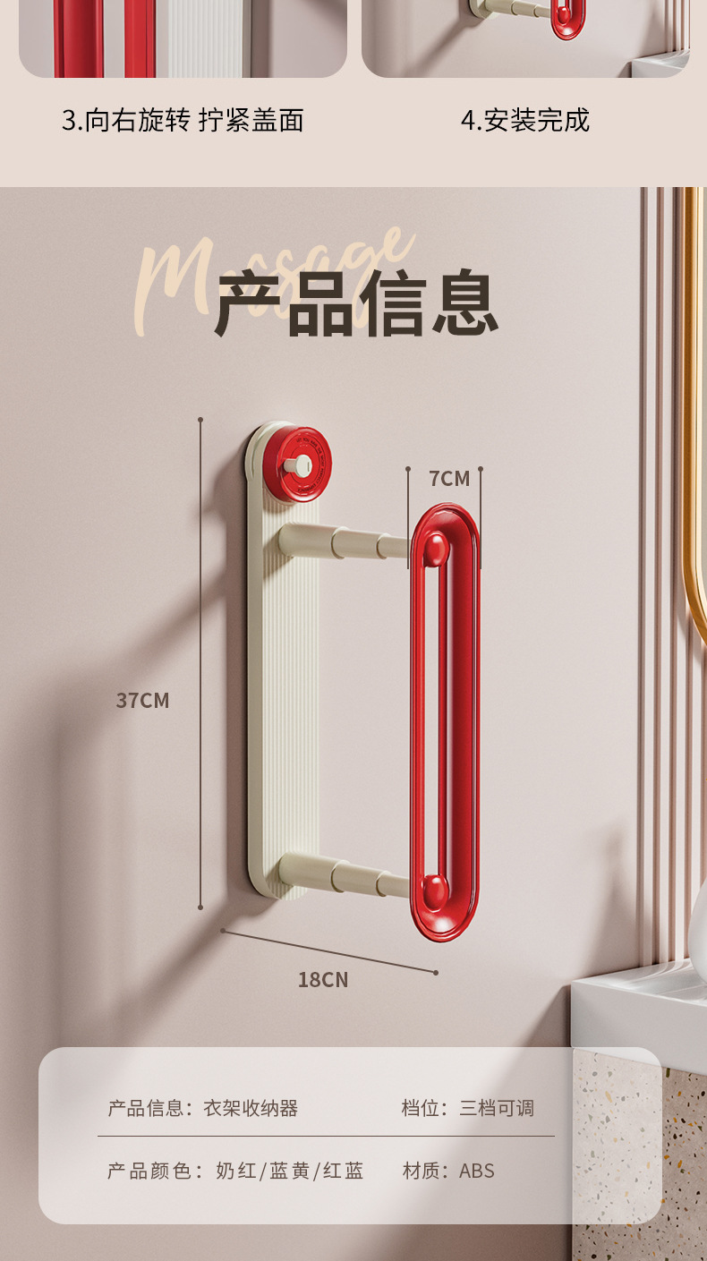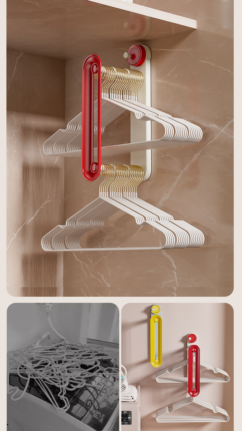 red blue hanger storage rack