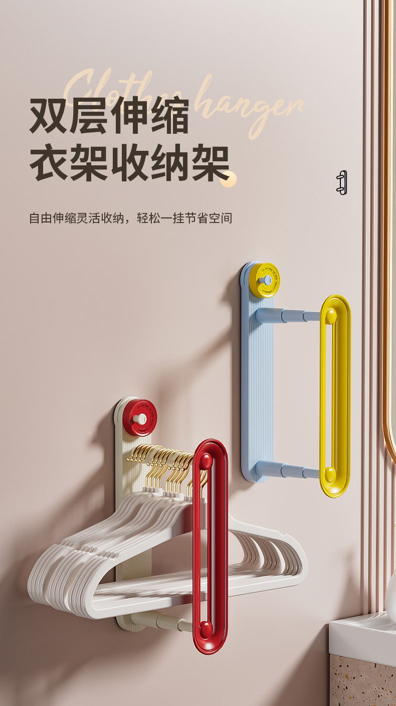blue yellow hanger storage rack