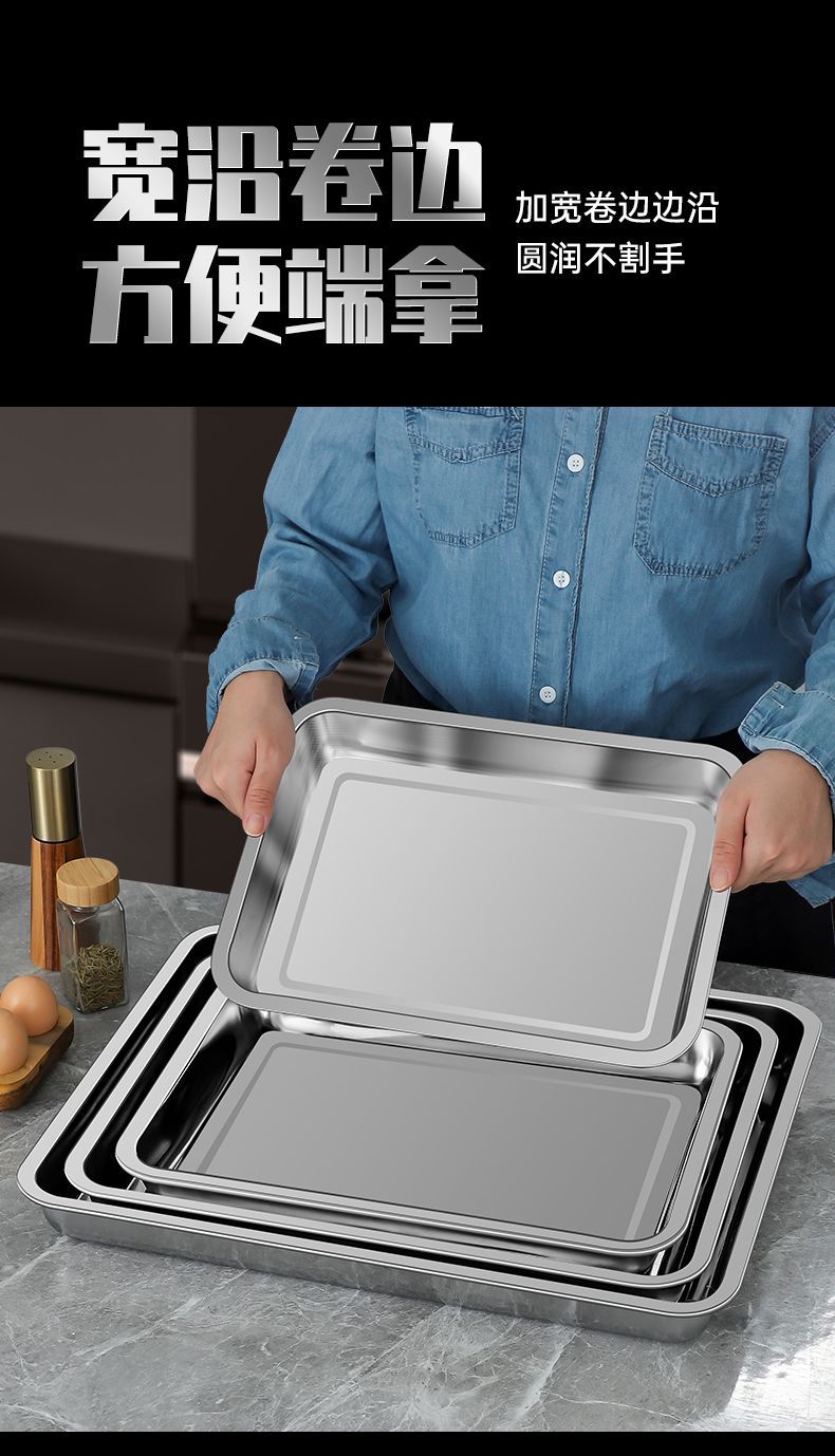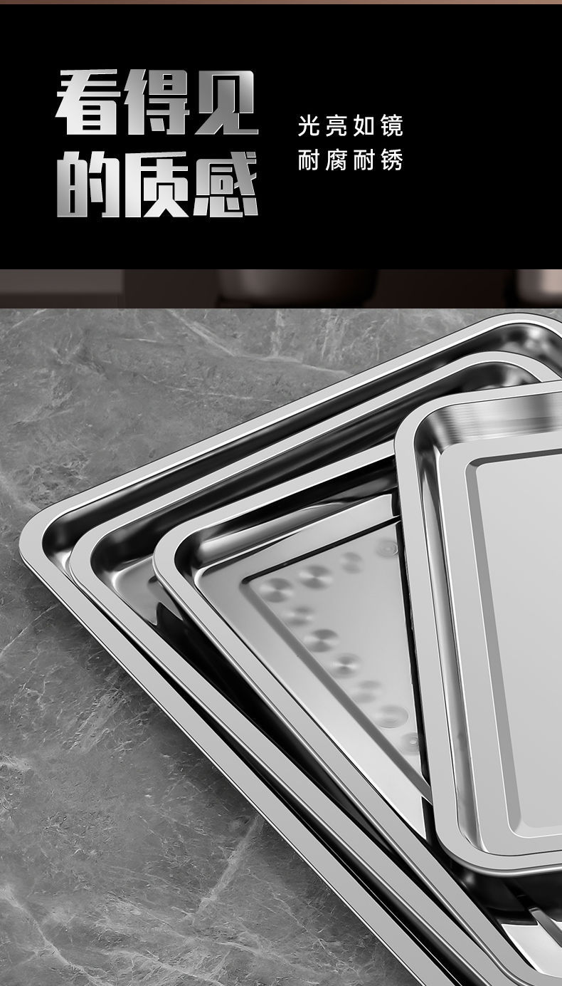 stainless steel plate tray rectangular plate commercial barbecue plate steamed rice tray plate braised food plate fish dish dumpling plate
