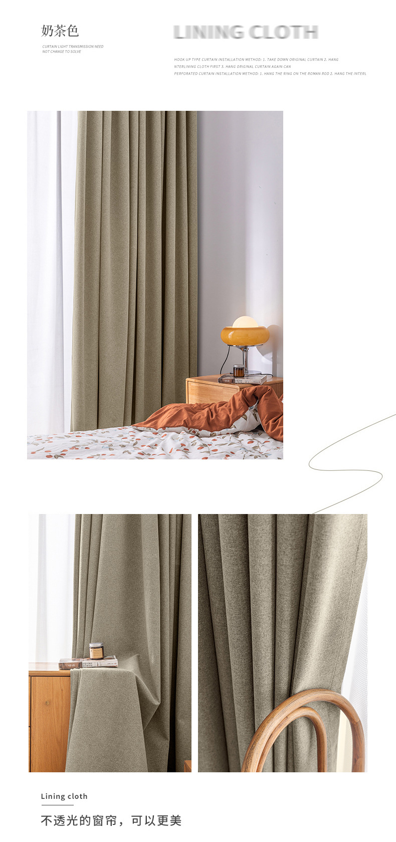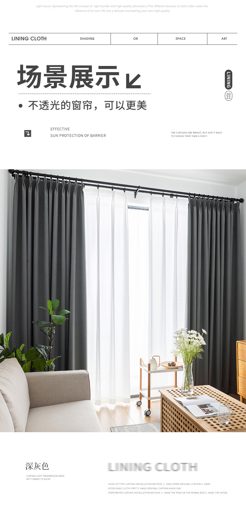 full shading curtain linen 100 opaque simple modern living room bedroom with hooks