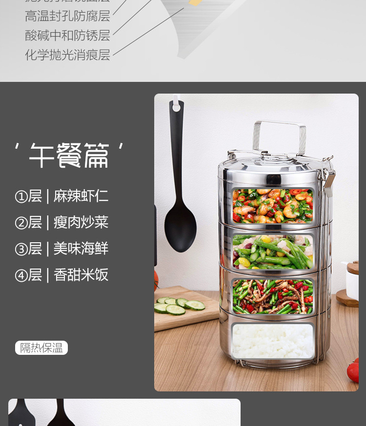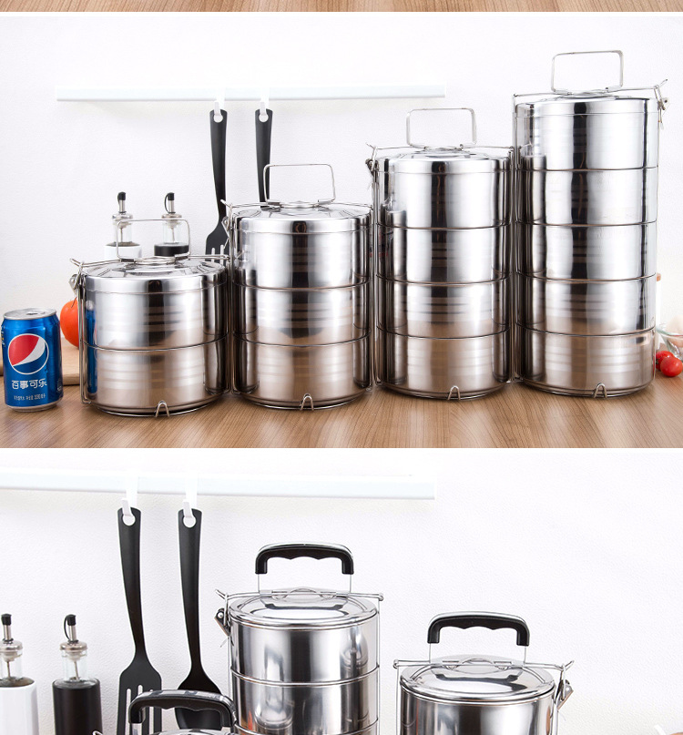 southeast asia printed stainless steel multi-layer lunch box with rice food grid layered compartment food basket canteen cabas portable pan lunch box