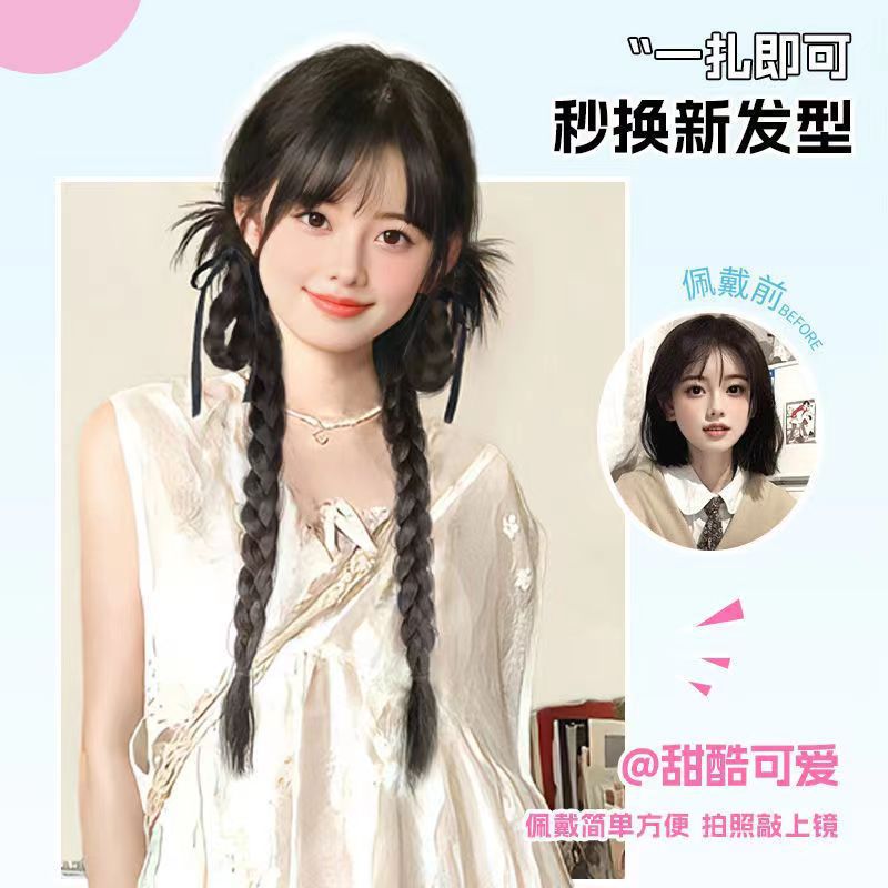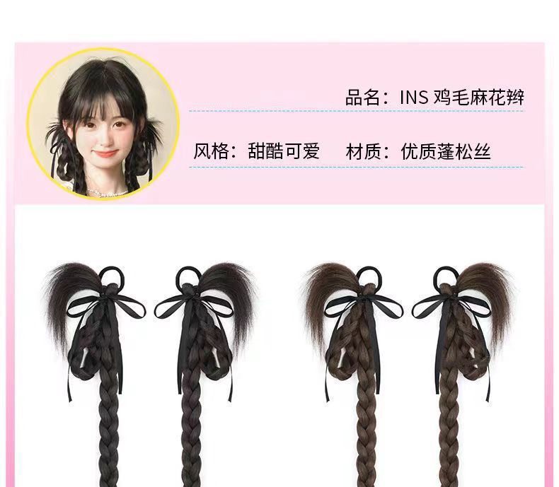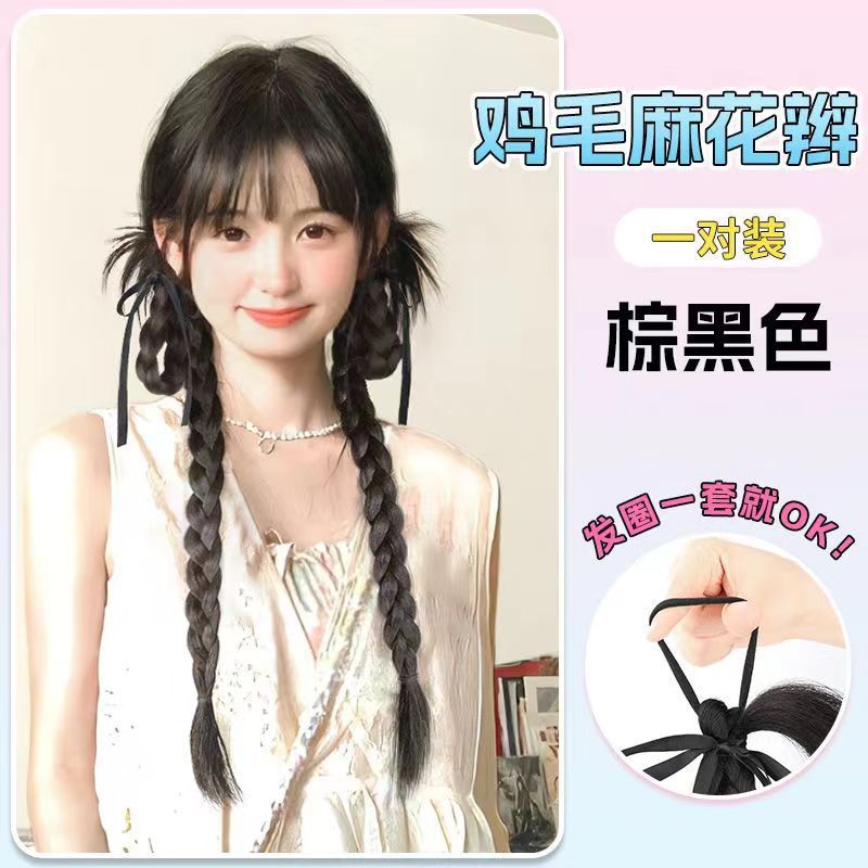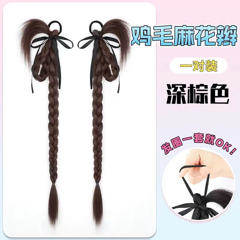 rabbit ear chicken hair braid-dark brown-one-pair package