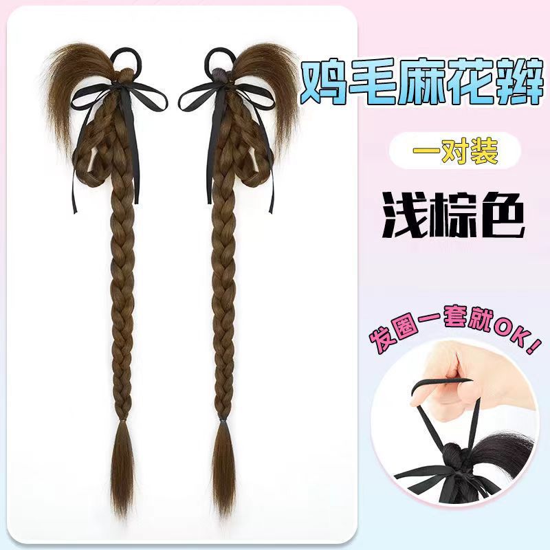 rabbit ear chicken hair braid-light brown-one-pair package