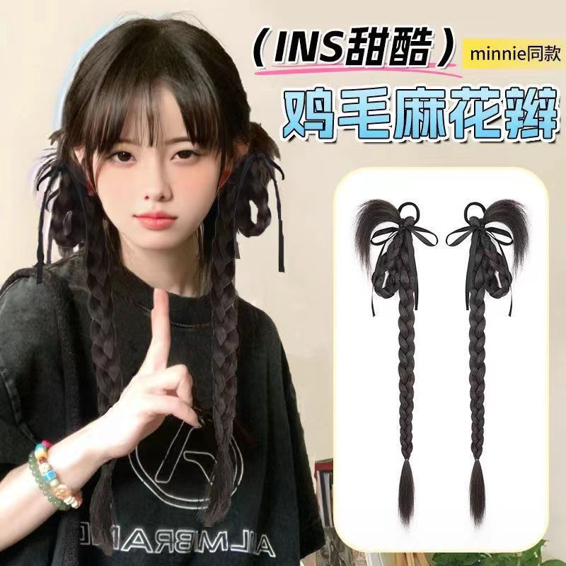 rabbit ear chicken hair braid-brown black-one-pair package