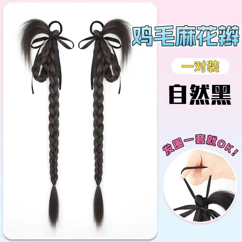 rabbit ear chicken hair braid-natural black-one-pair package