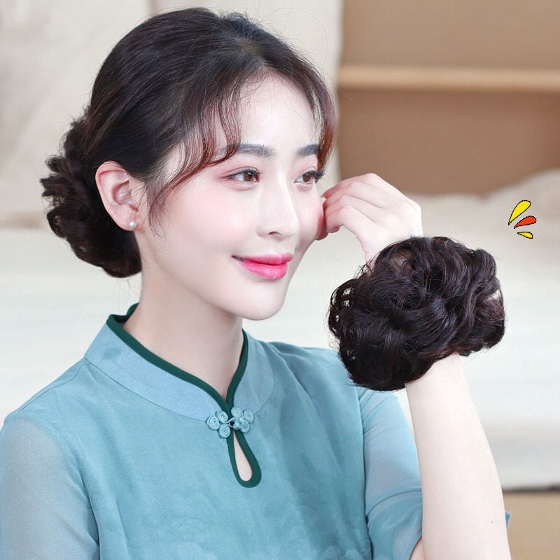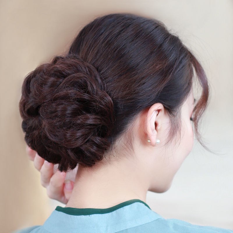 wig curly hair bun-dark brown