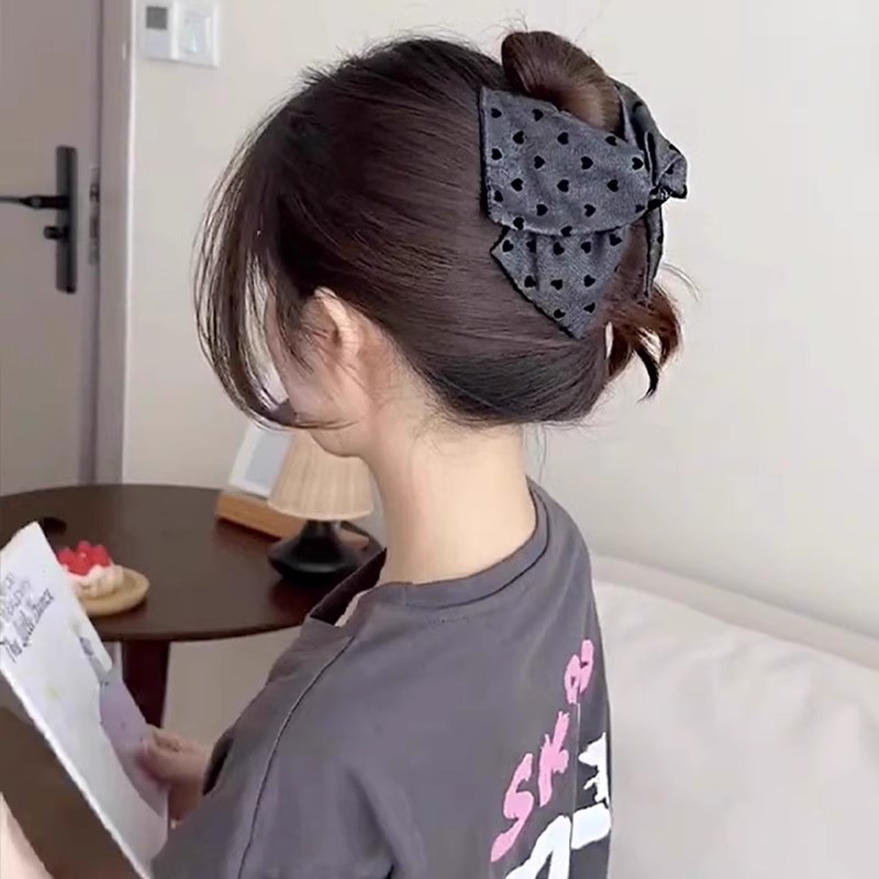 french retro denim love triangle grip female large horsetail clip high sense back head updo shark clip