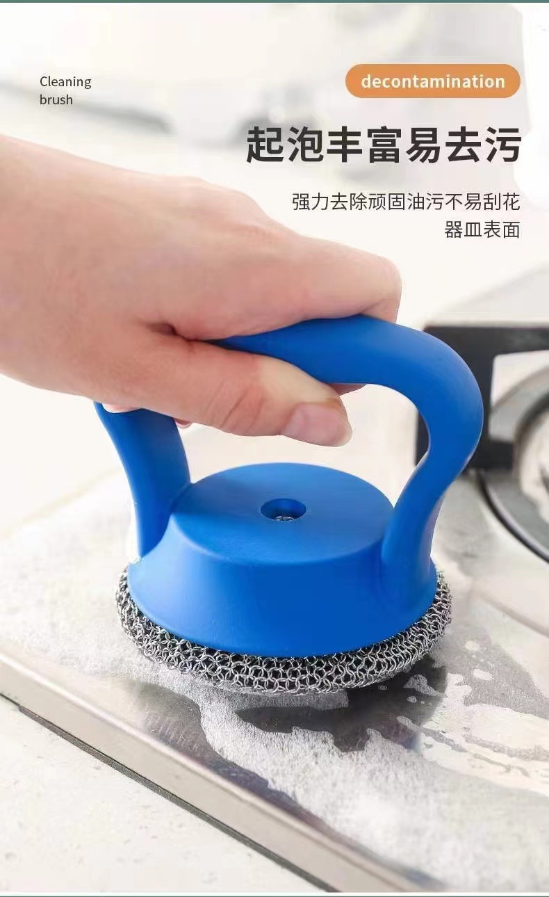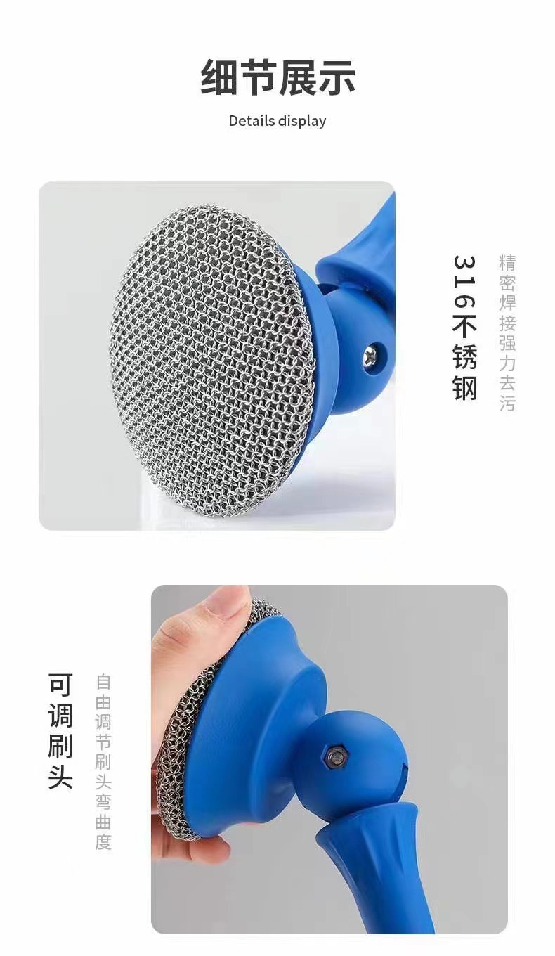 stainless steel long handle dish brush blue
