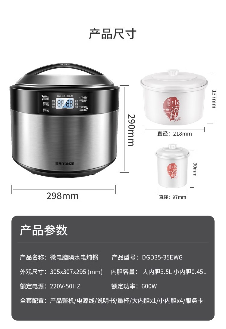 stewing out of water sealed liner 3.5l +304 stainless steel steamer
