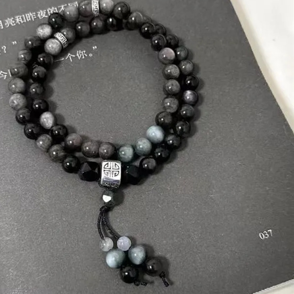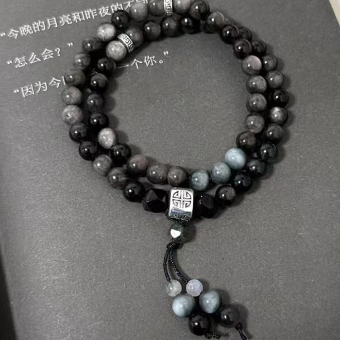 [silent land] double layer twin-obsidian bracelet