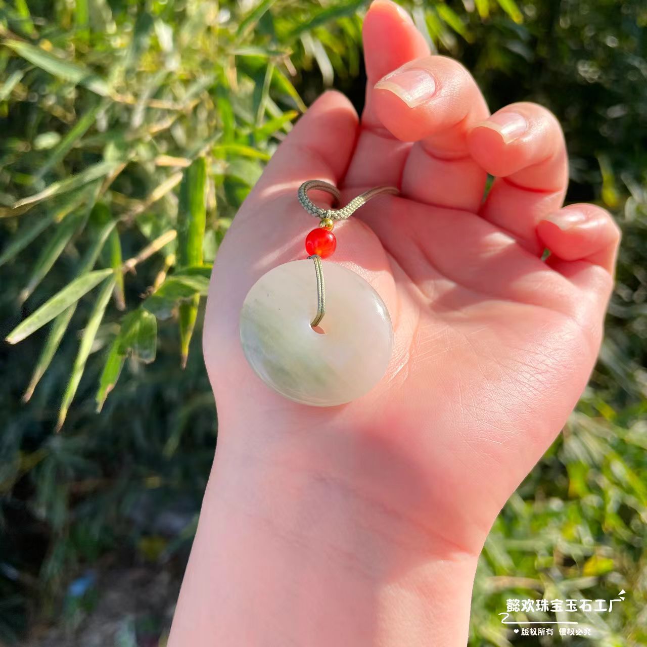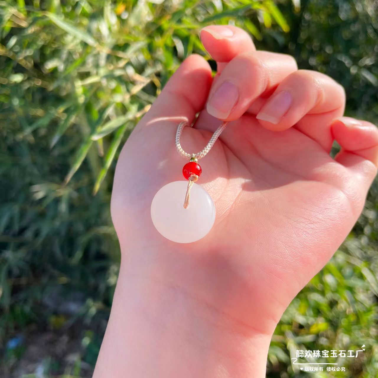 jinsi jade safety-blessing card diameter: 20mm