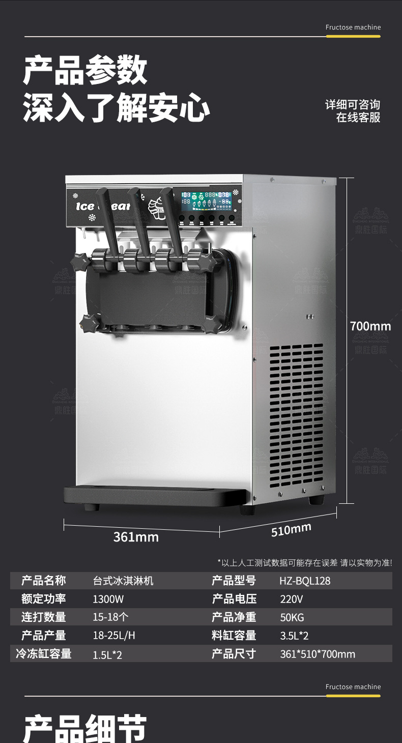 128-type milk wax white desktop three-head ice cream machine