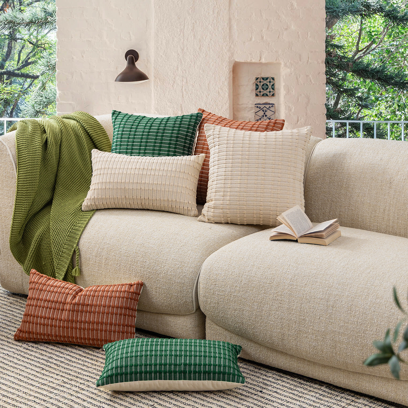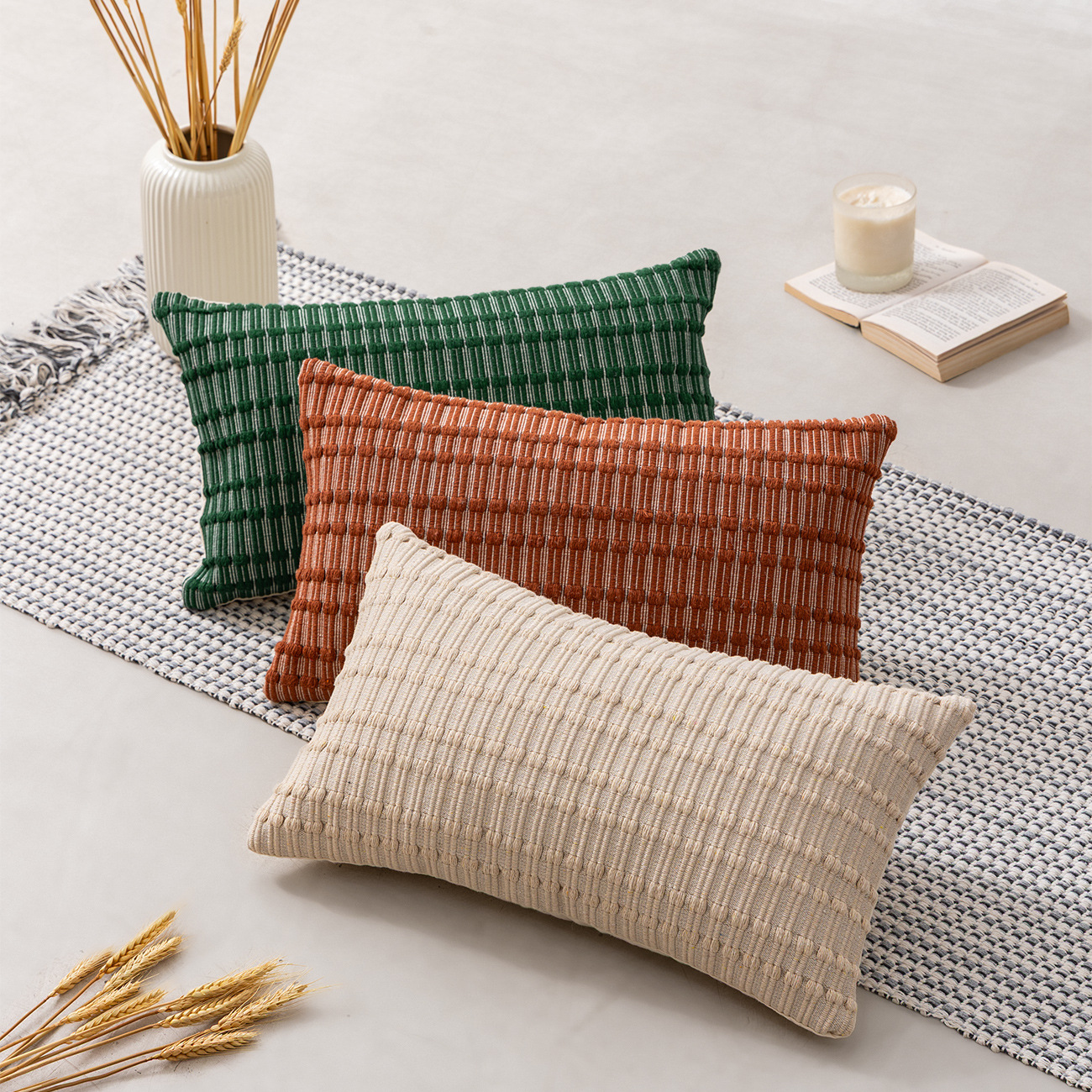 | Jiange cotton yarn woven waist pillow case - mixed green | 30x50cm - Waist Pillow Case without Pillow Insert | 290 |