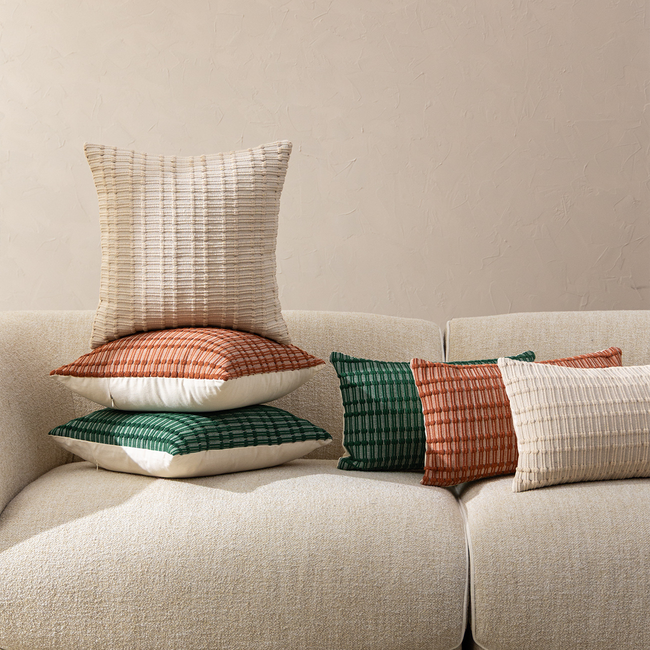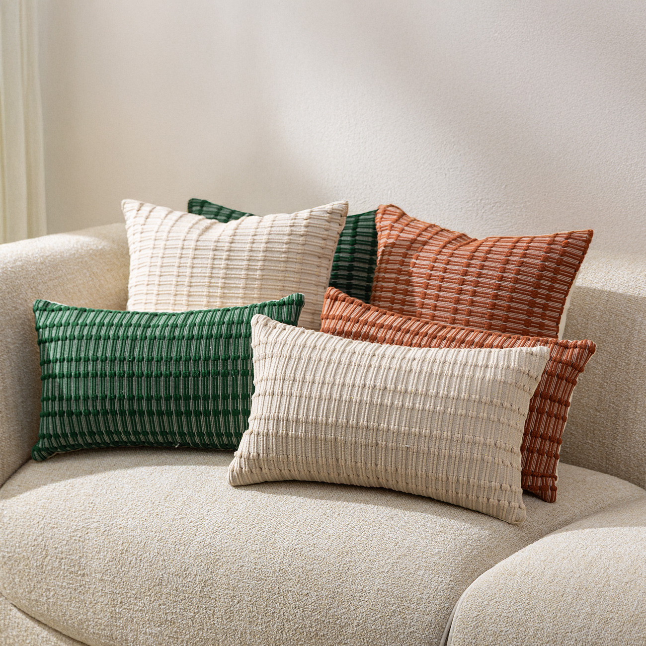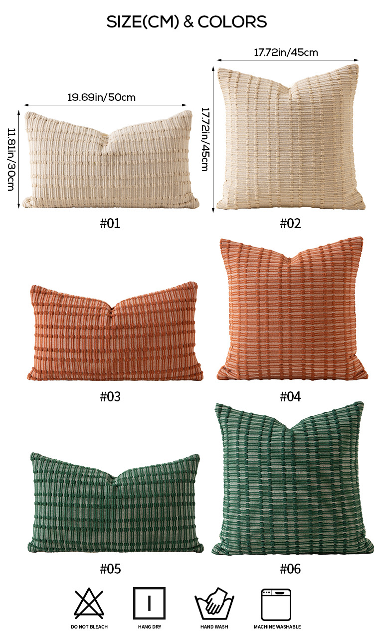 | Color | Jiange cotton yarn color woven pillowcase - mixed green, Jiange cotton yarn color woven pillowcase - mixed white, Jiange cotton yarn color woven pillowcase - mixed red, Jiange cotton yarn color woven waist pillowcase - mixed green, Jiange cotton yarn color woven waist pillowcase - mixed white, Jiange cotton yarn color woven waist pillowcase - mixed red | Size | 45x45cm pillow cover without the core, 30x50cm waist pillow cover without the core |