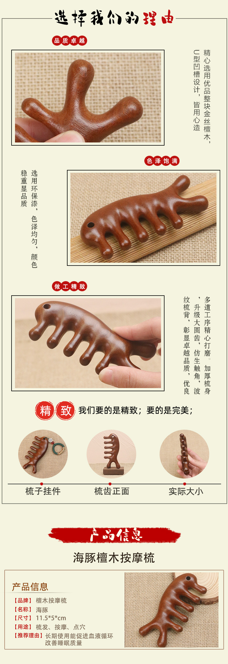 hole dolphin massage comb (ebony) + simple box