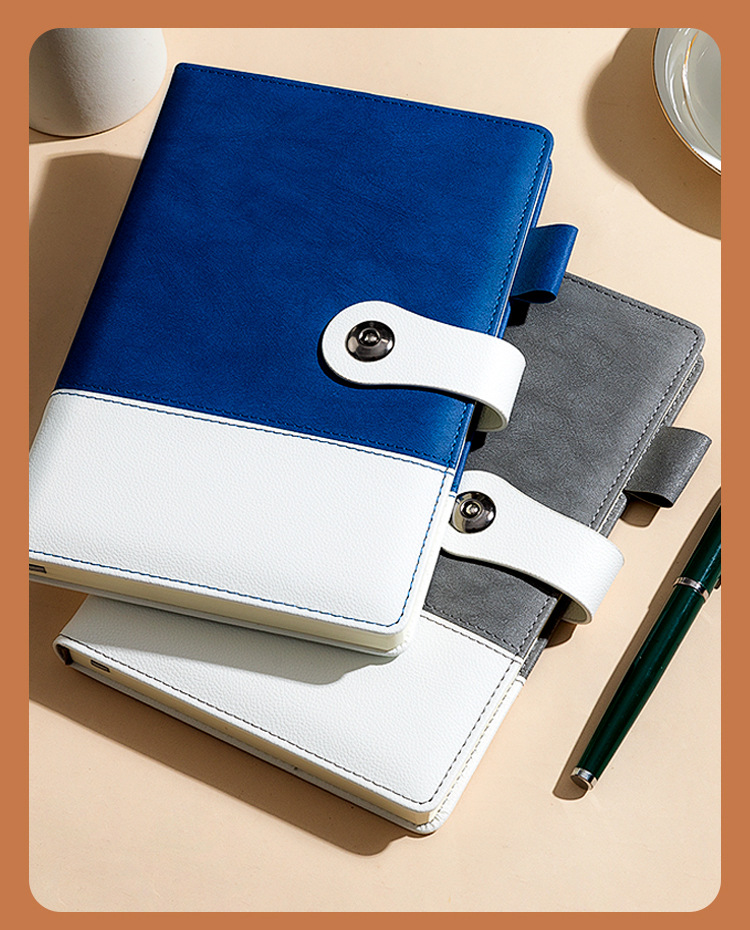 eyelet button [dual-color patchwork] horizontal line book-blue-pen kit [pen + ink sac + gift box gift bag]]