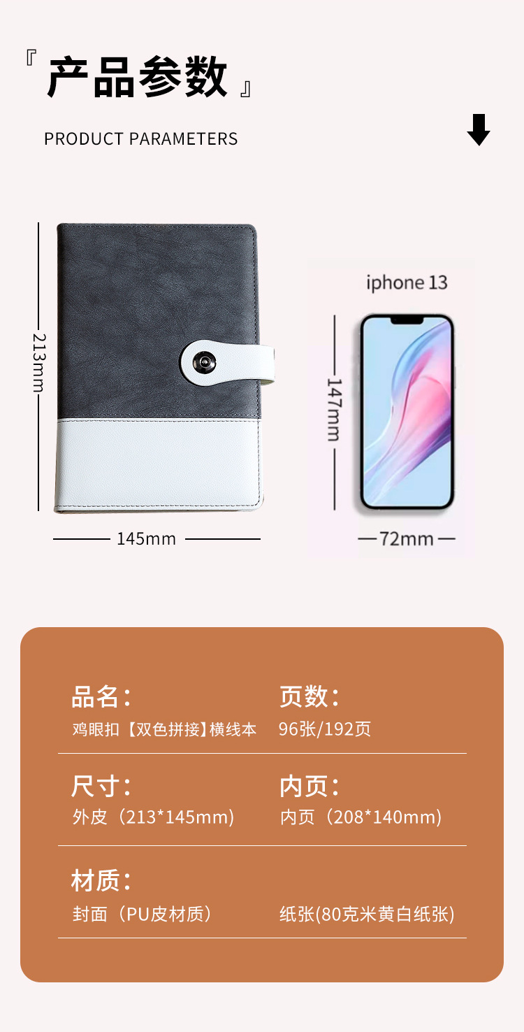 eyelet button [dual-color patchwork] horizontal line book-gray-pen kit [pen + ink sac + gift box gift bag]]