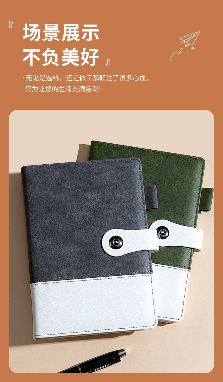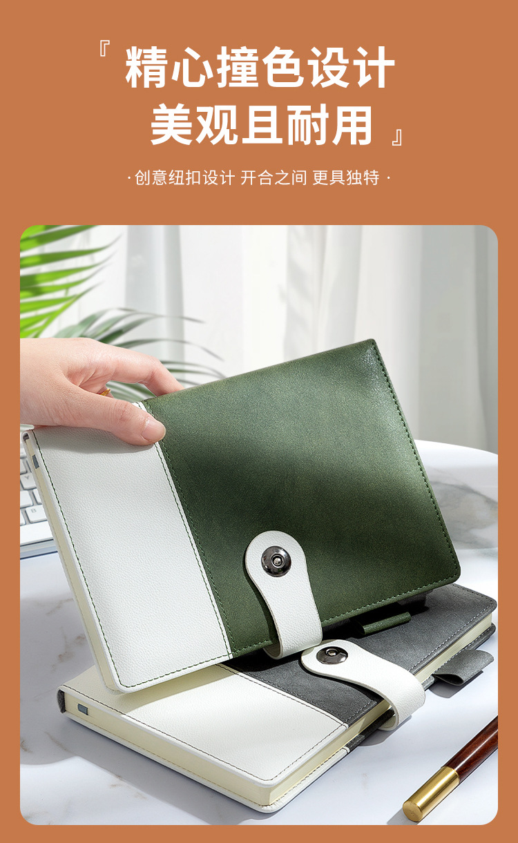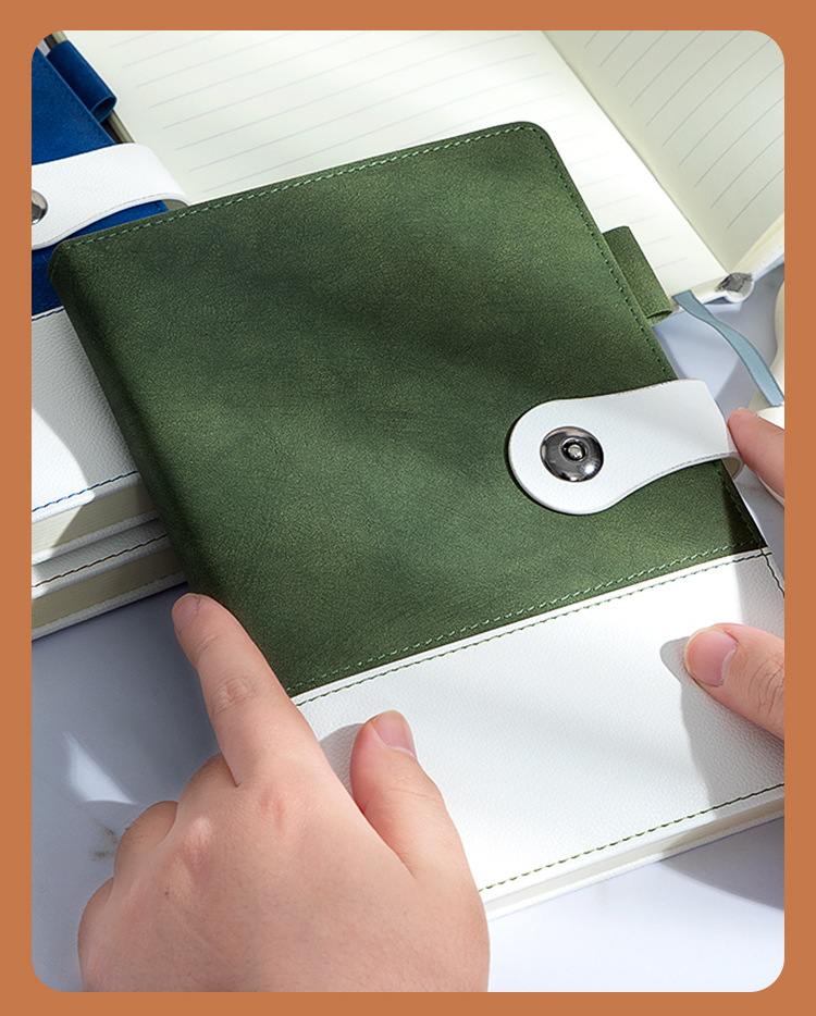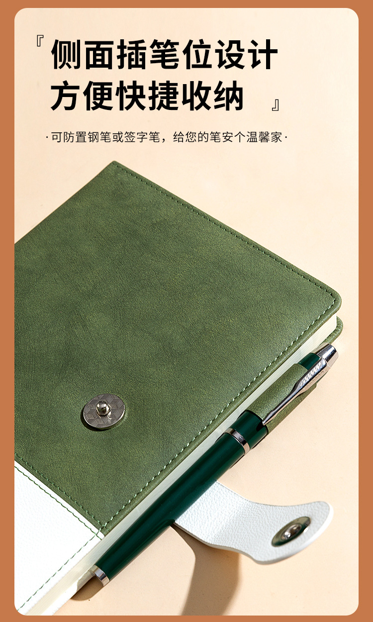 eyelet button [dual-color patchwork] horizontal line book-green-pen kit [pen + ink sac + gift box gift bag]]