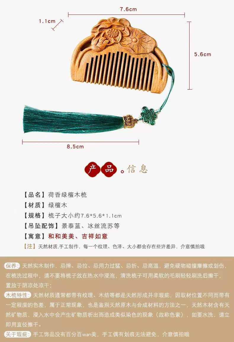 guajacwood lotus fragrance wooden comb tassel