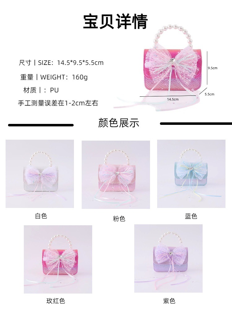 "Clutch Bag": Pearl chain design for elegant hand-carrying, instantly elevating your little princess style!**Color Variations Available**(Color: Pink/White/Purple/Blue/Rose Red)Satisfy different fashion styles, versatile and stylish!💝 **【Perfect Gift】Children's Day, birthdays, New Year... A thoughtful gift for little princesses, making her the most eye-catching cutie!Package Contents- Kids shoulder bag ×🌟 **Let your little one start with a fashion sense, carry it and be the sweetest little princess!**