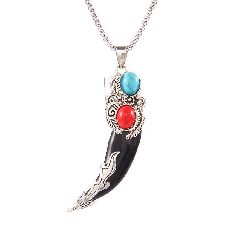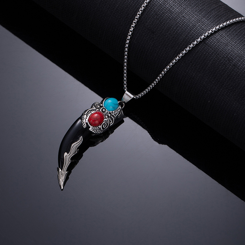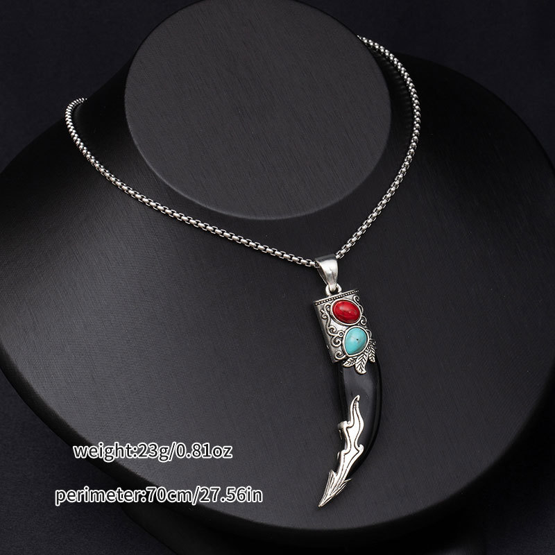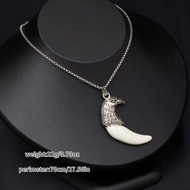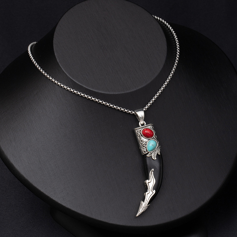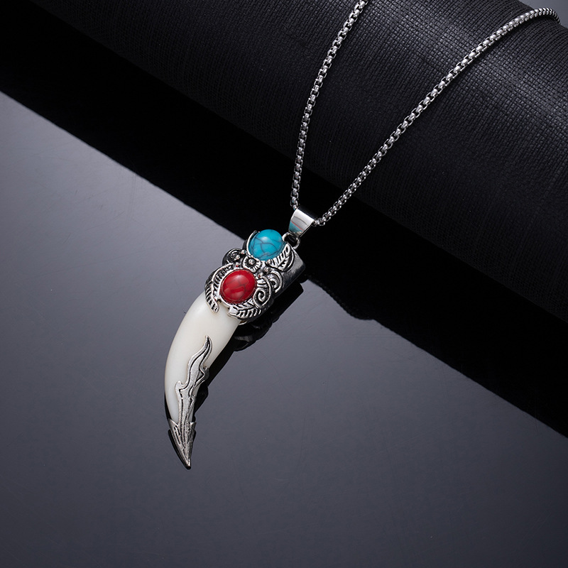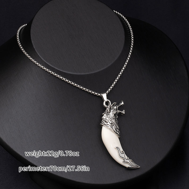 Retro ethnic style simulation wolf fang stainless steel necklace for men, bold and unique wolf and tiger head long-length accessories wholesale supply