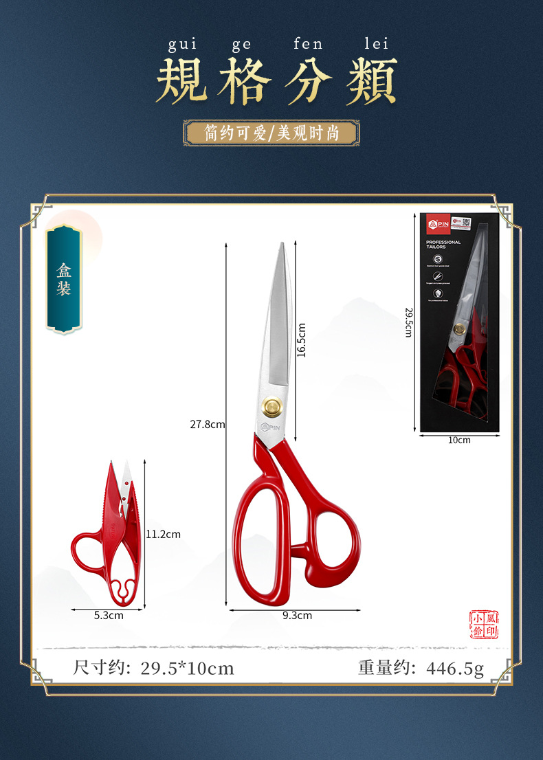 red handle groove anti-rust tailor scissors 10-inch + scissors