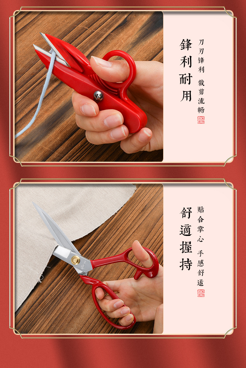 red handle groove anti-rust tailor scissors 9-inch + scissors