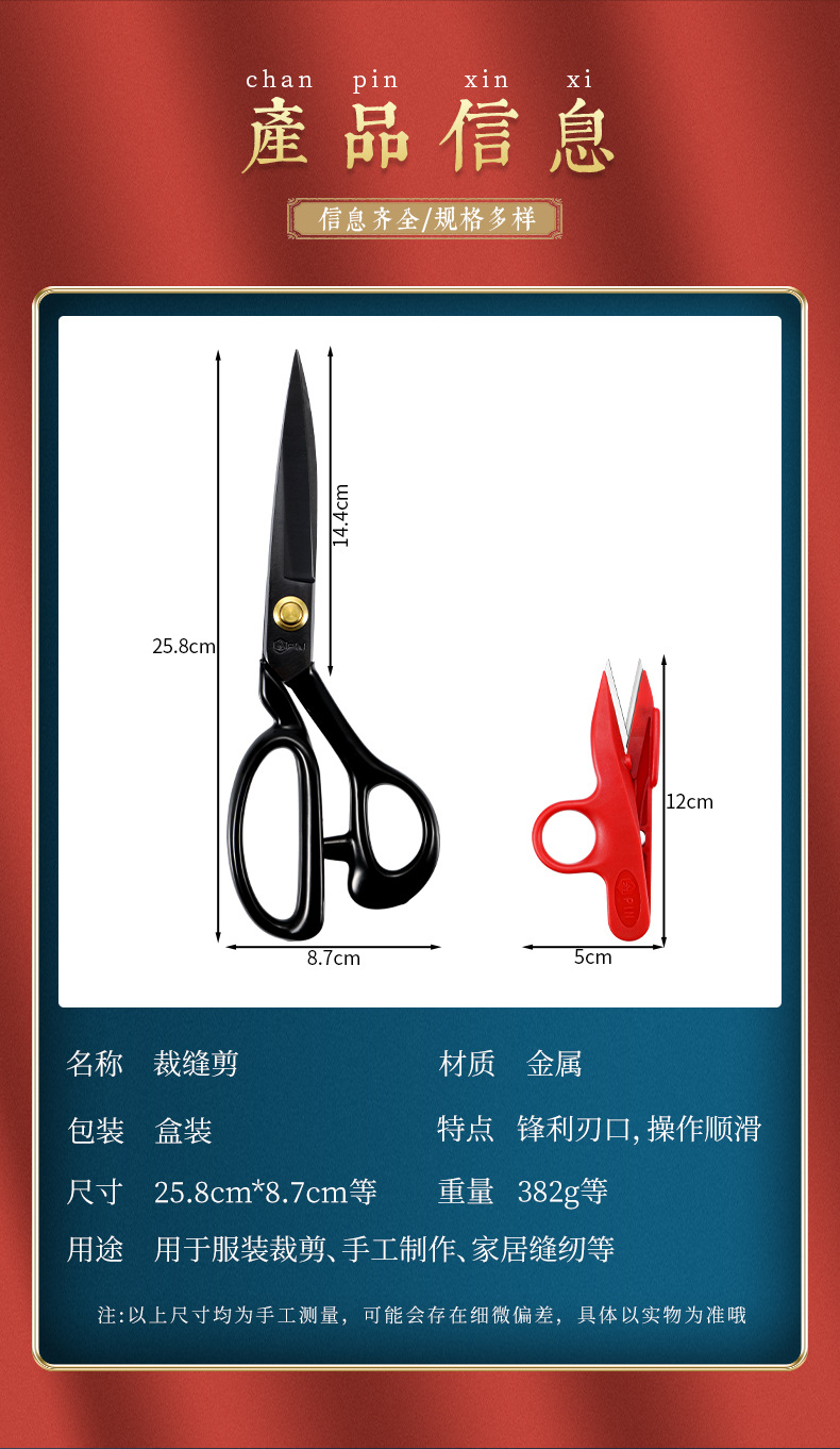 red handle groove anti-rust tailor scissors 12-inch + scissors