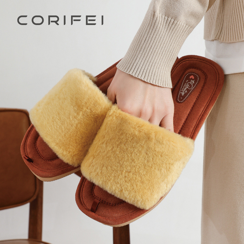 lightweight eva sole fluffy slippers woolen slipper plush spring and autumn home slippers indoor slippers household female woolen slipper