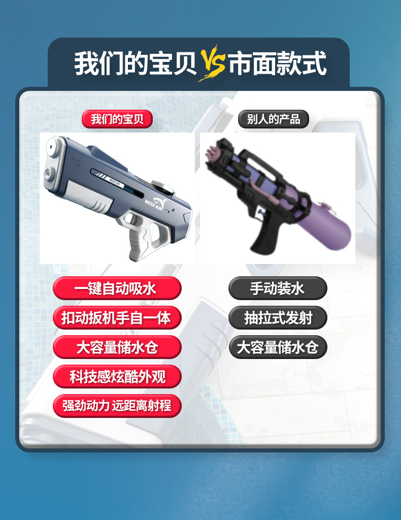 electric + self-priming water gun-blue