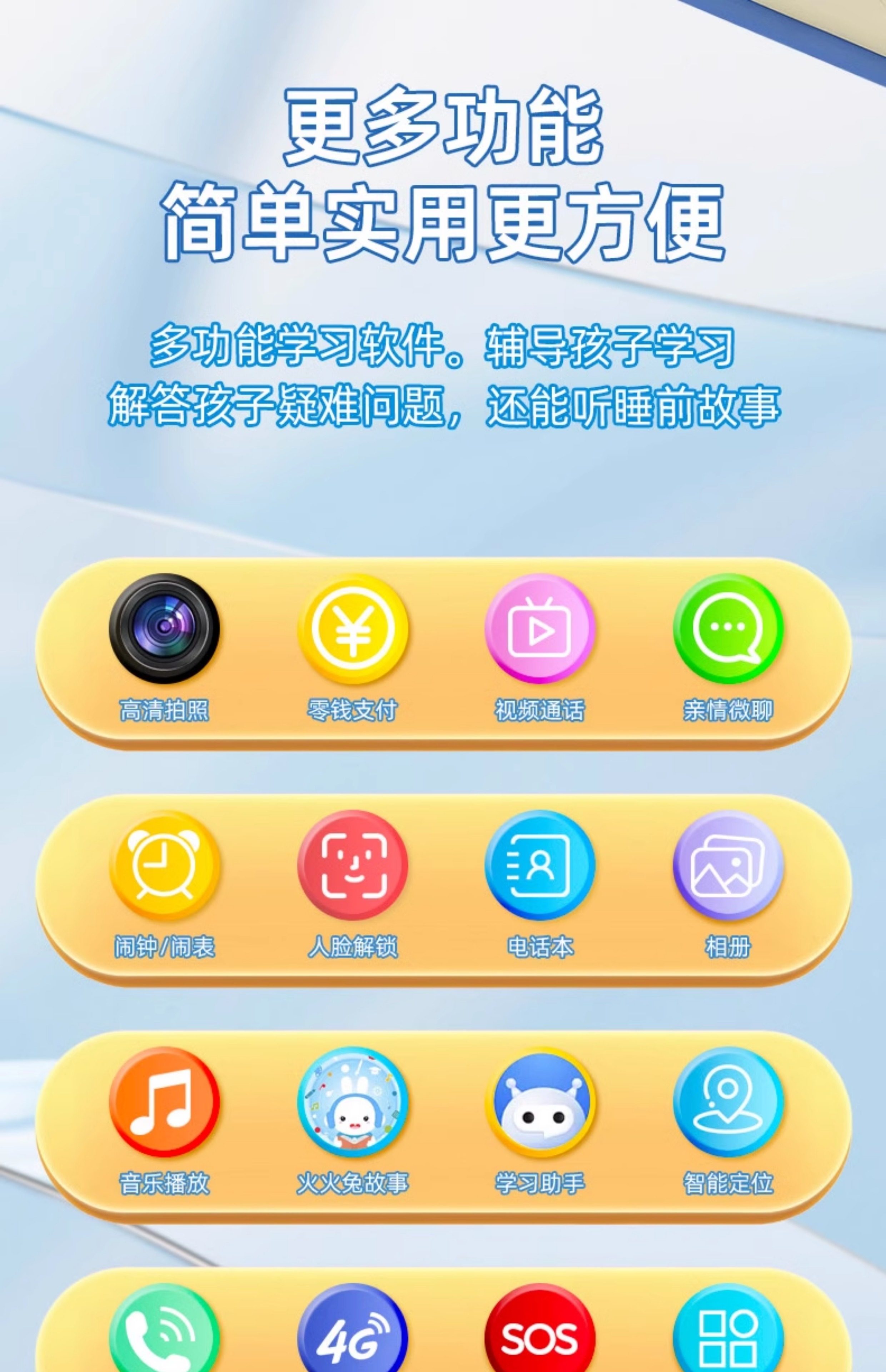 netcom big screen blue-video call-waterproof-learning-precise positioning-music story