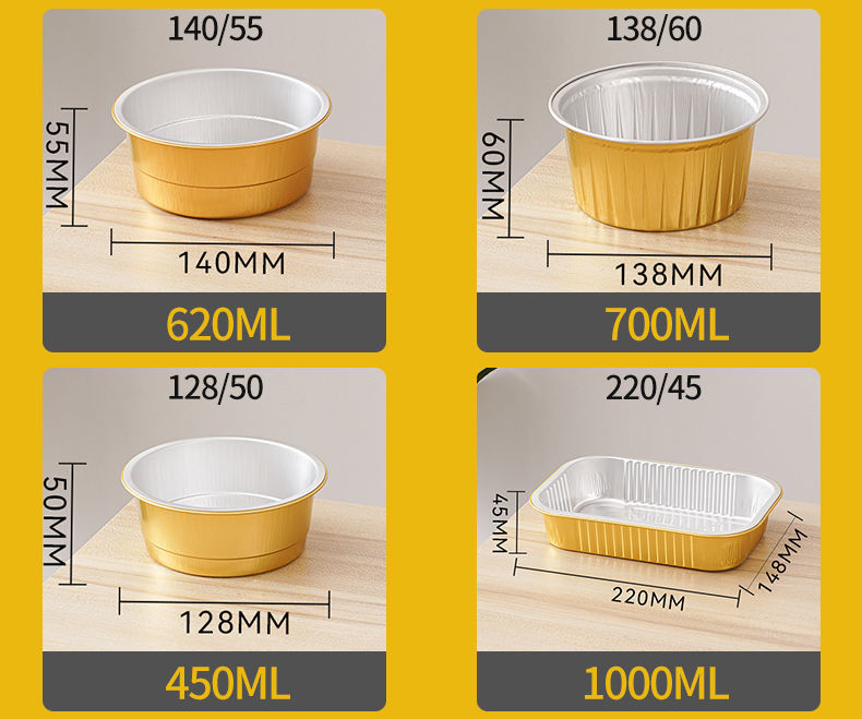 disposable food grade high temperature resistant gold foil tin tray steamed baked multi-purpose aluminum foil packing lunch box