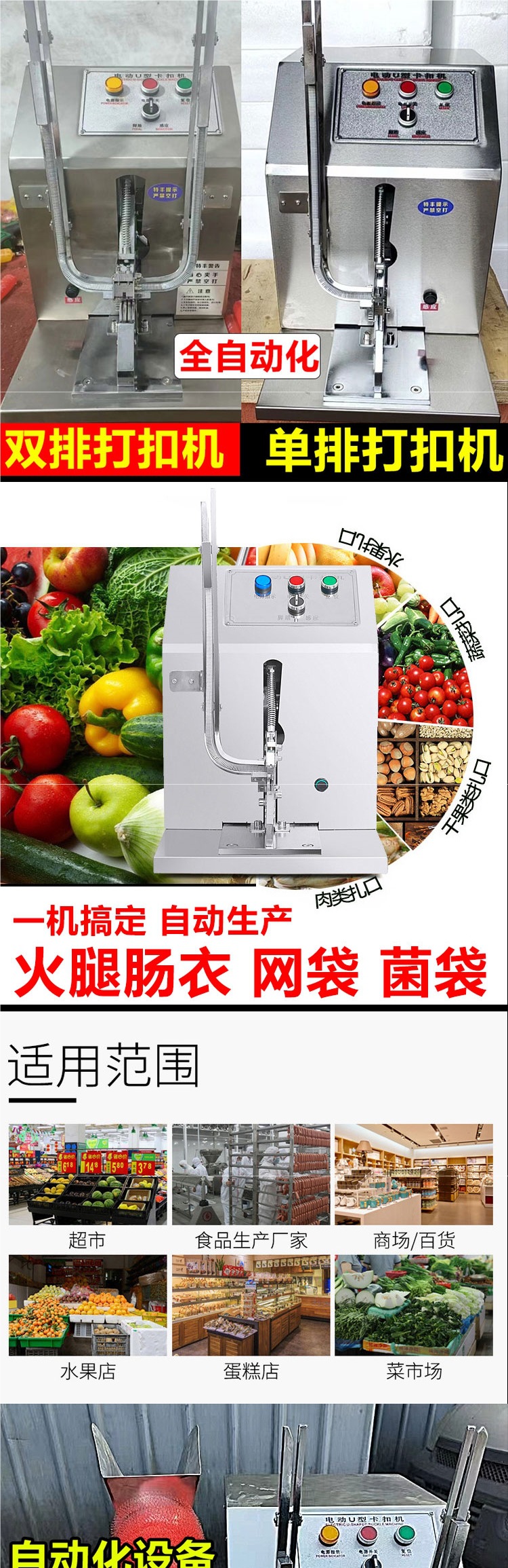 automatic chicken meat cutter sealing machine electric bread bag double buckle double row buckle sausage net pocket ham sausage dotter none