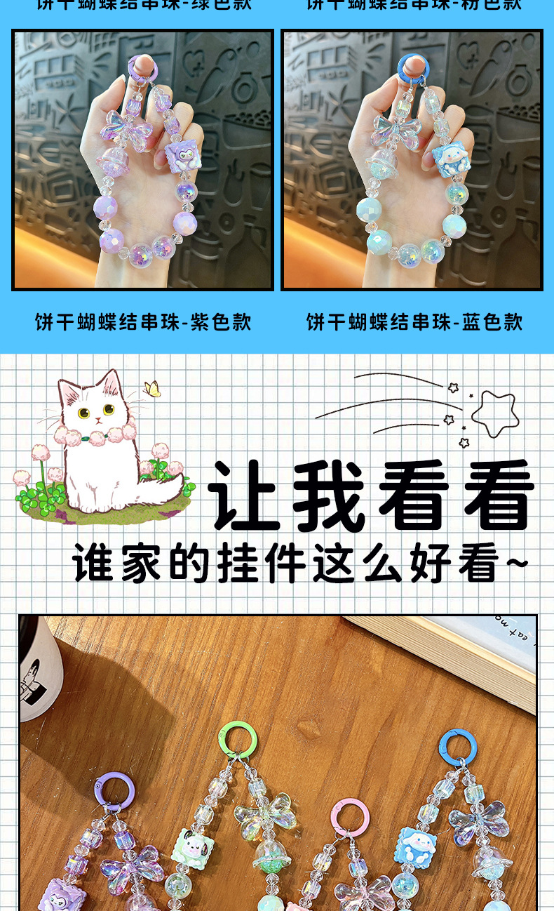 blue-cream biscuit beaded mobile phone charm