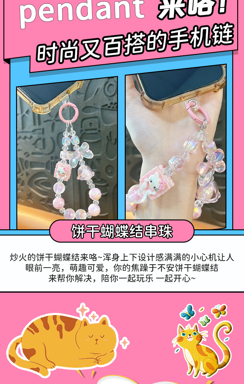pink-cream biscuit beaded mobile phone charm