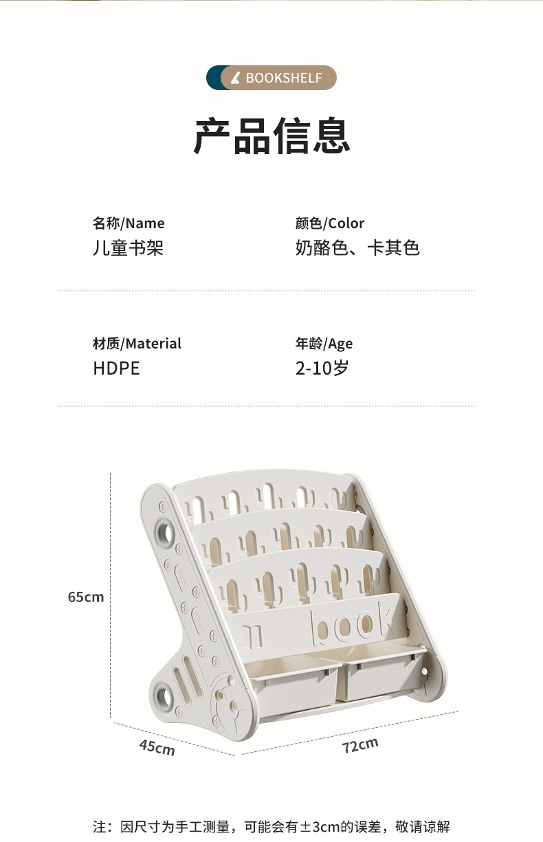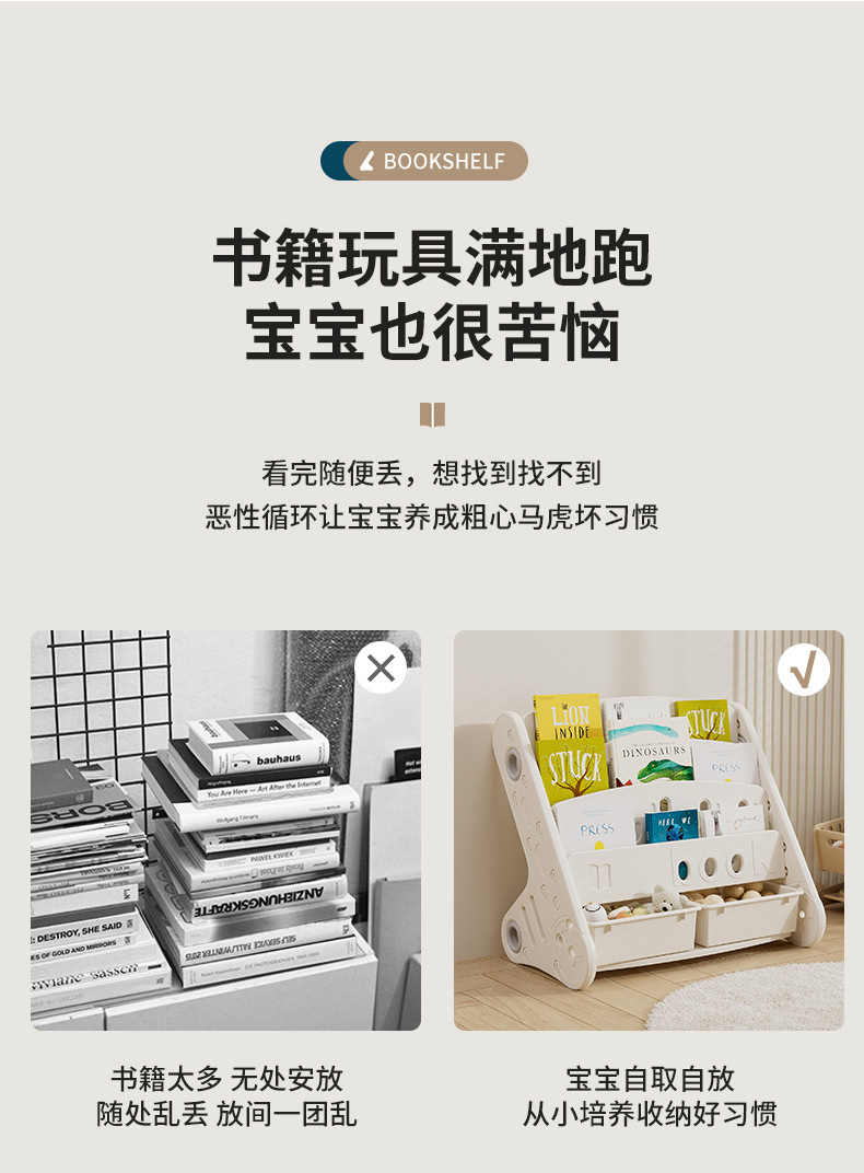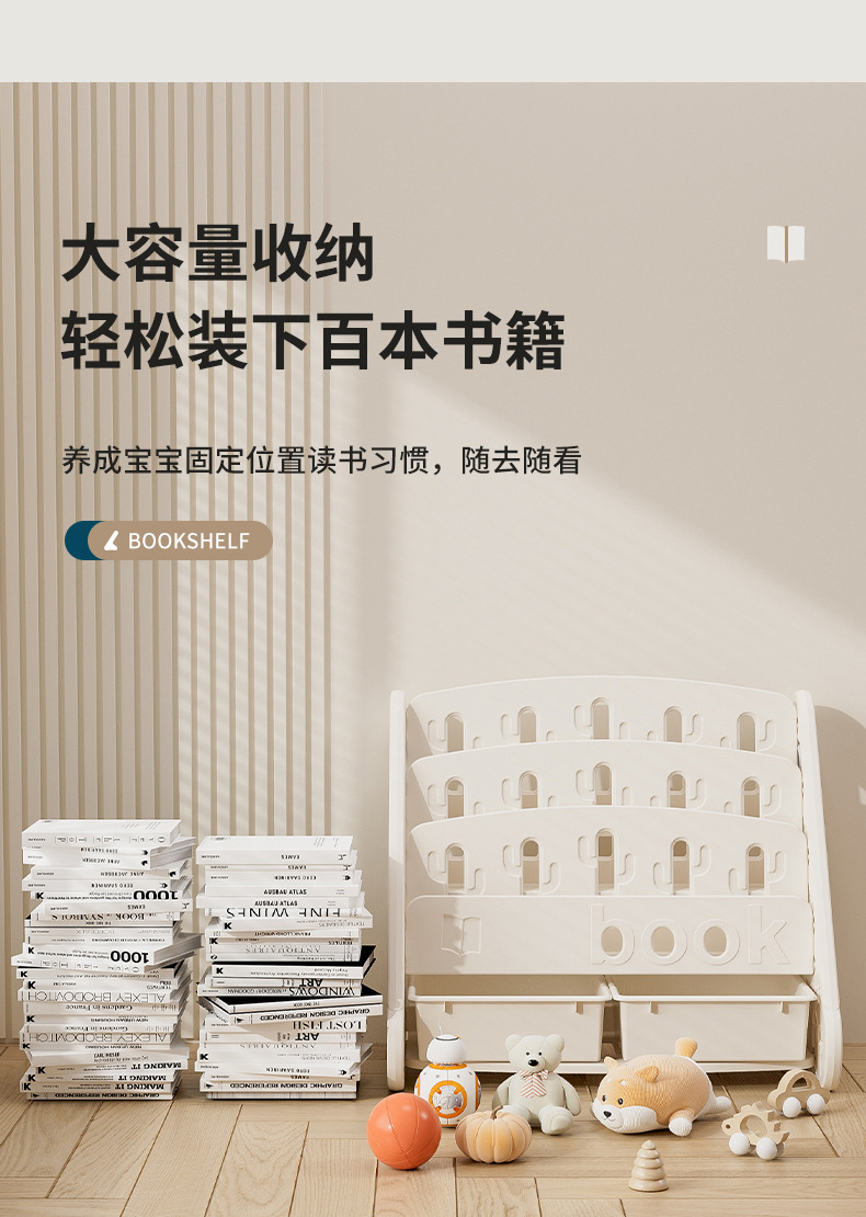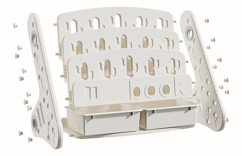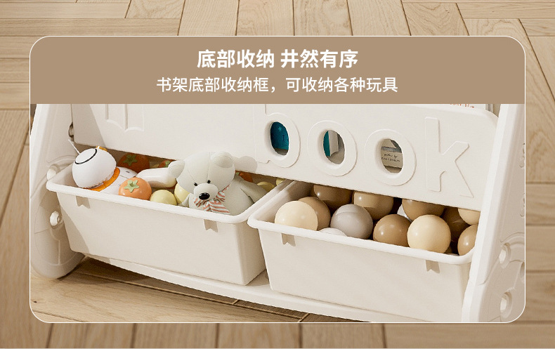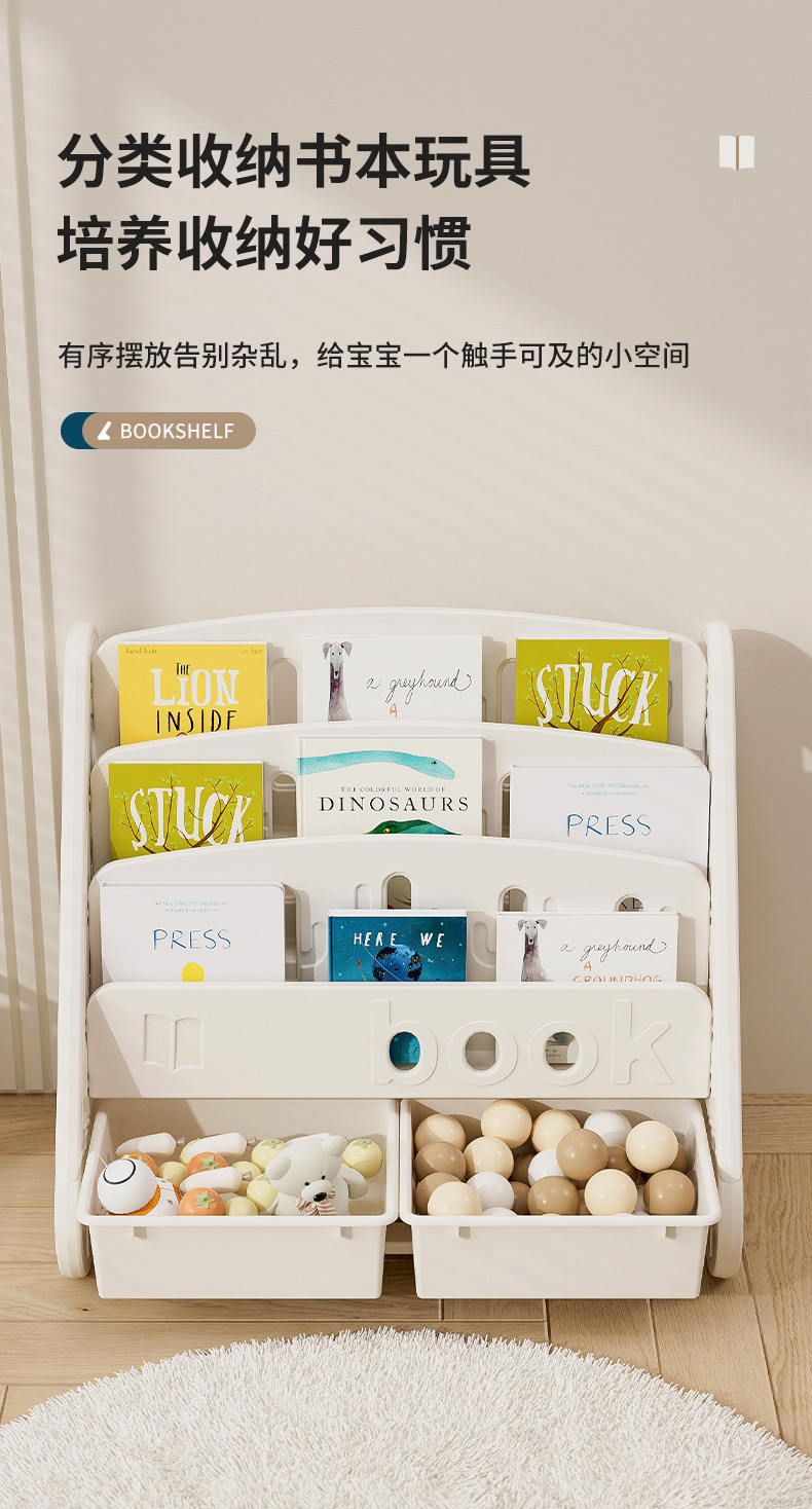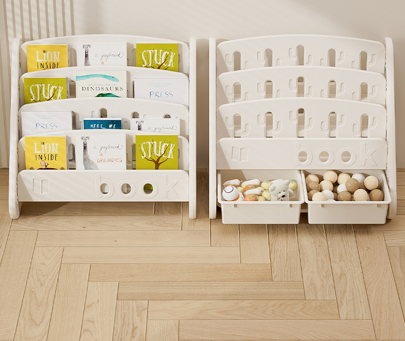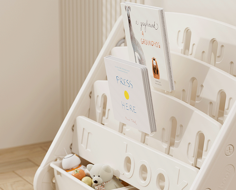 windmill picture book bookshelf-three layers + storage box (gray and white)