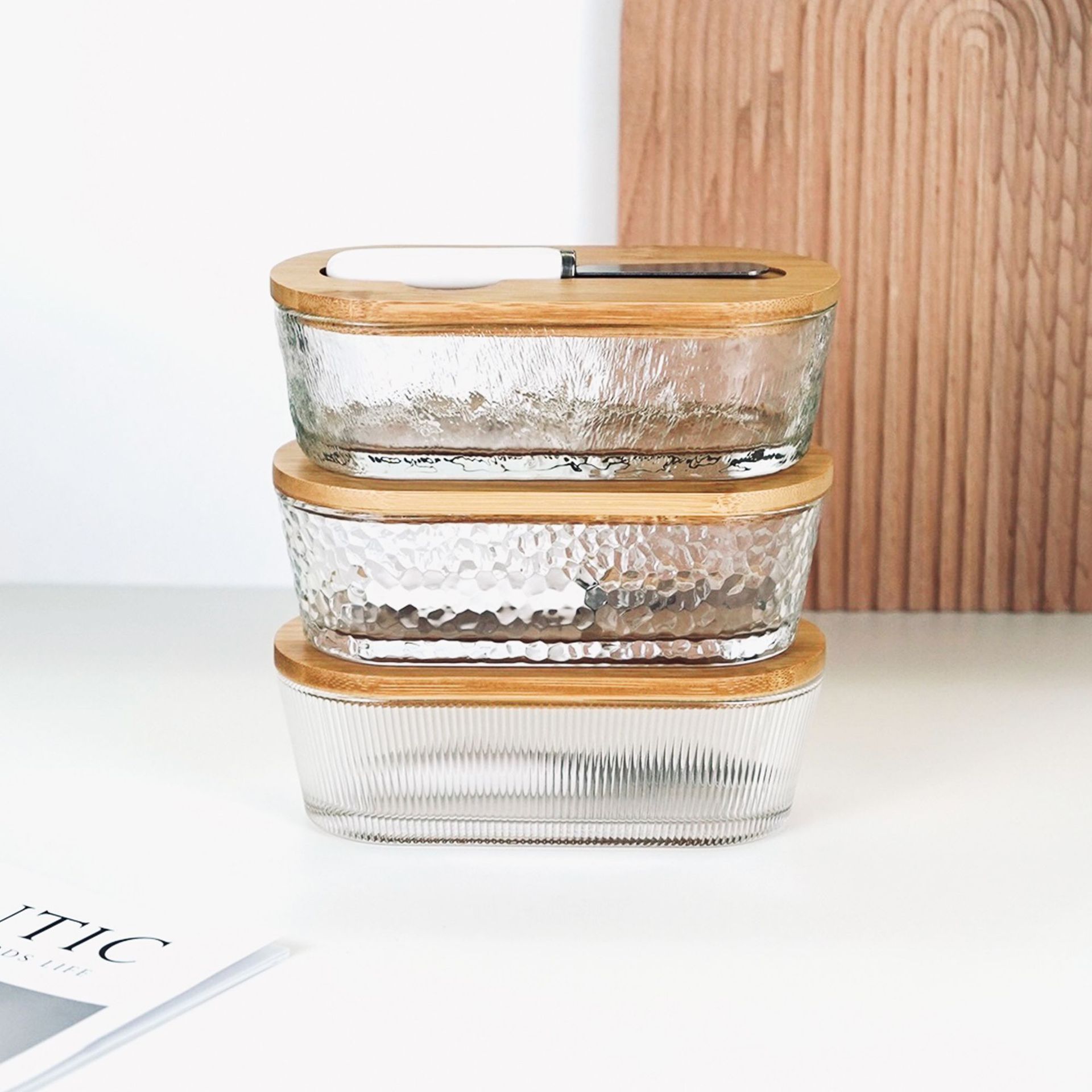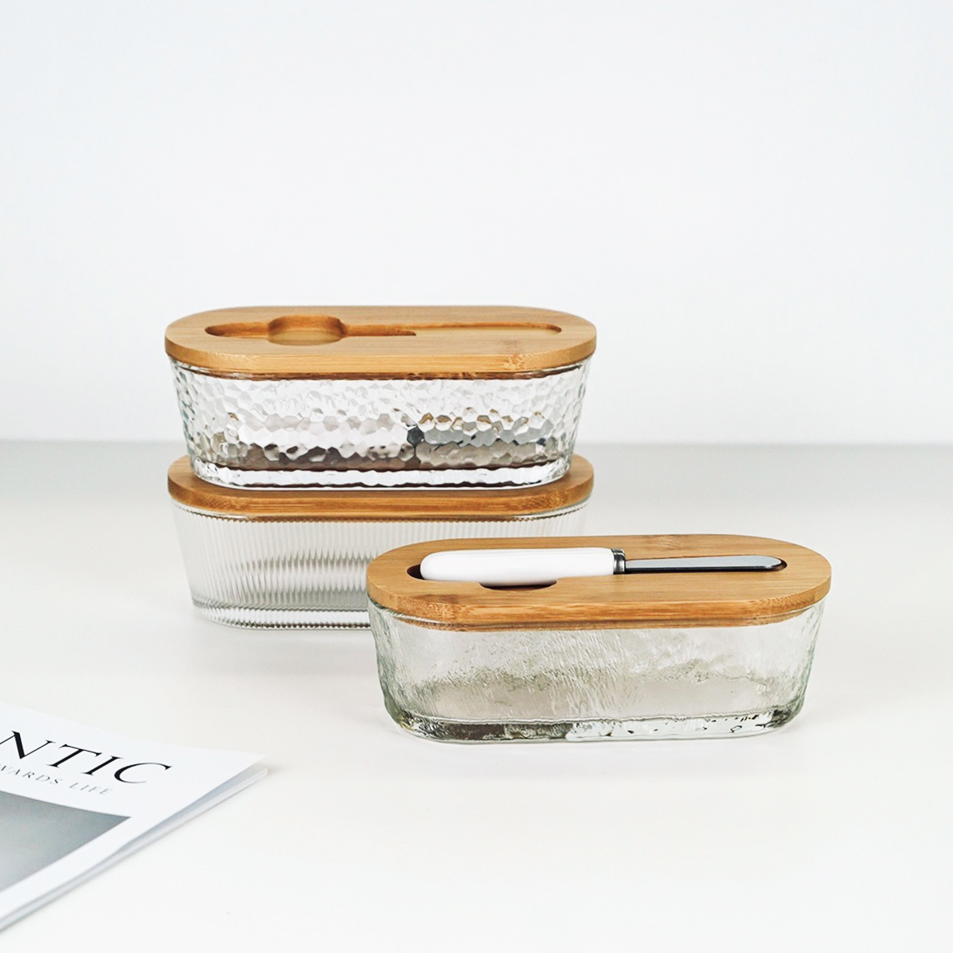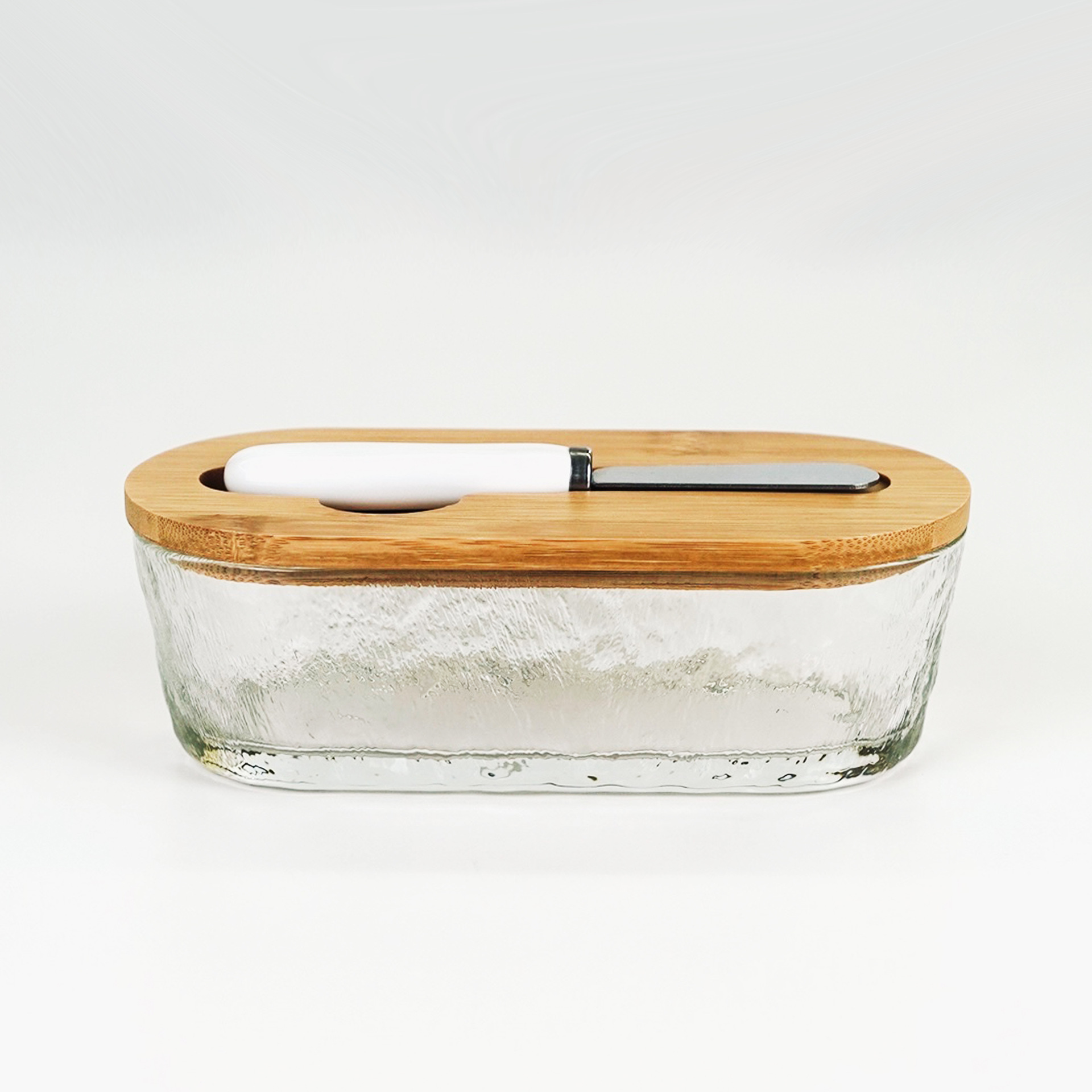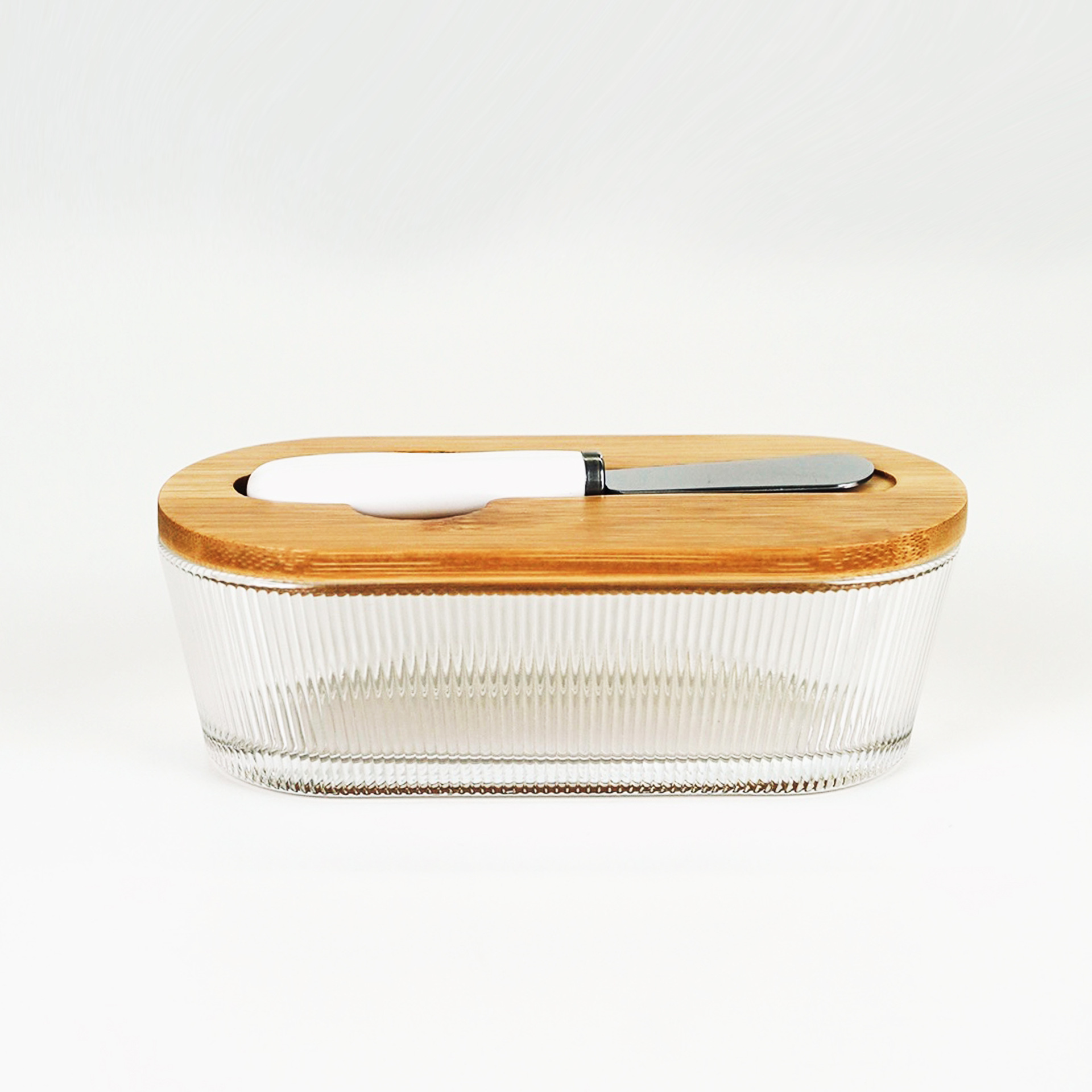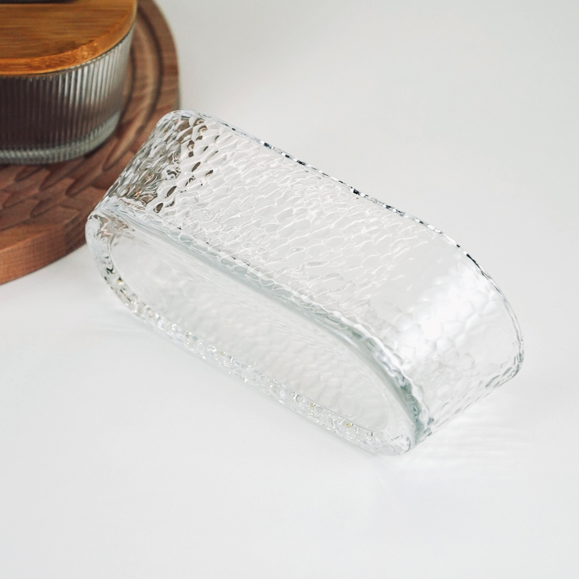vertical grain glass butter box