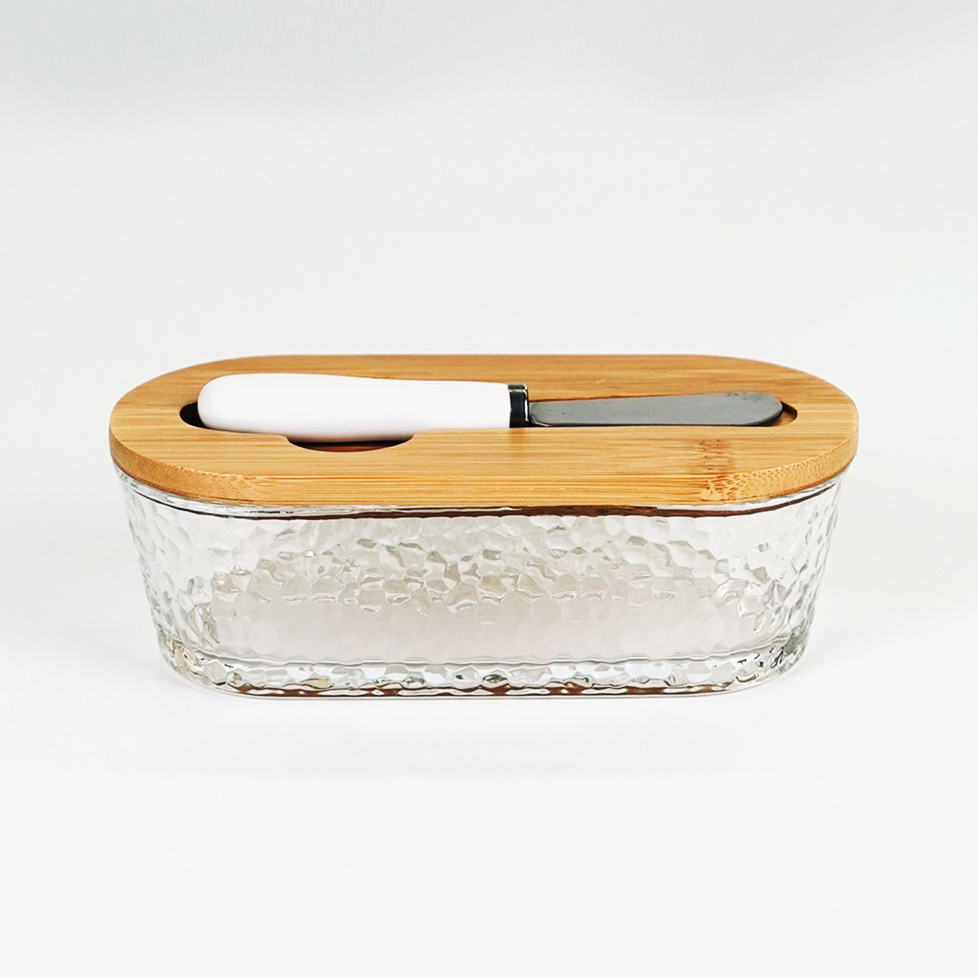 hammered pattern glass butter box