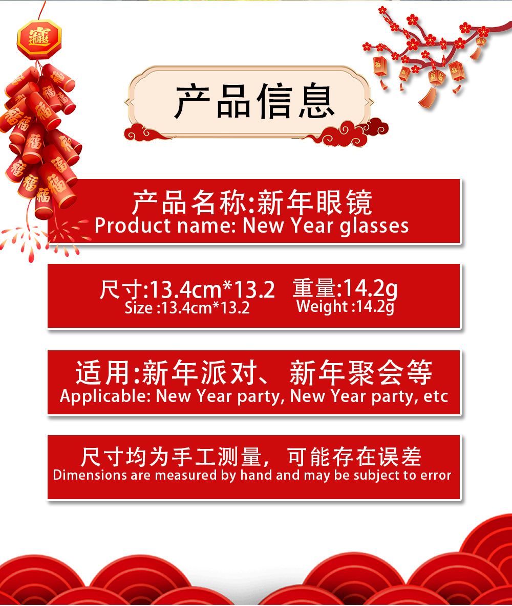 | new year glasses | CN¥ 0.0 | 78633 piece available |