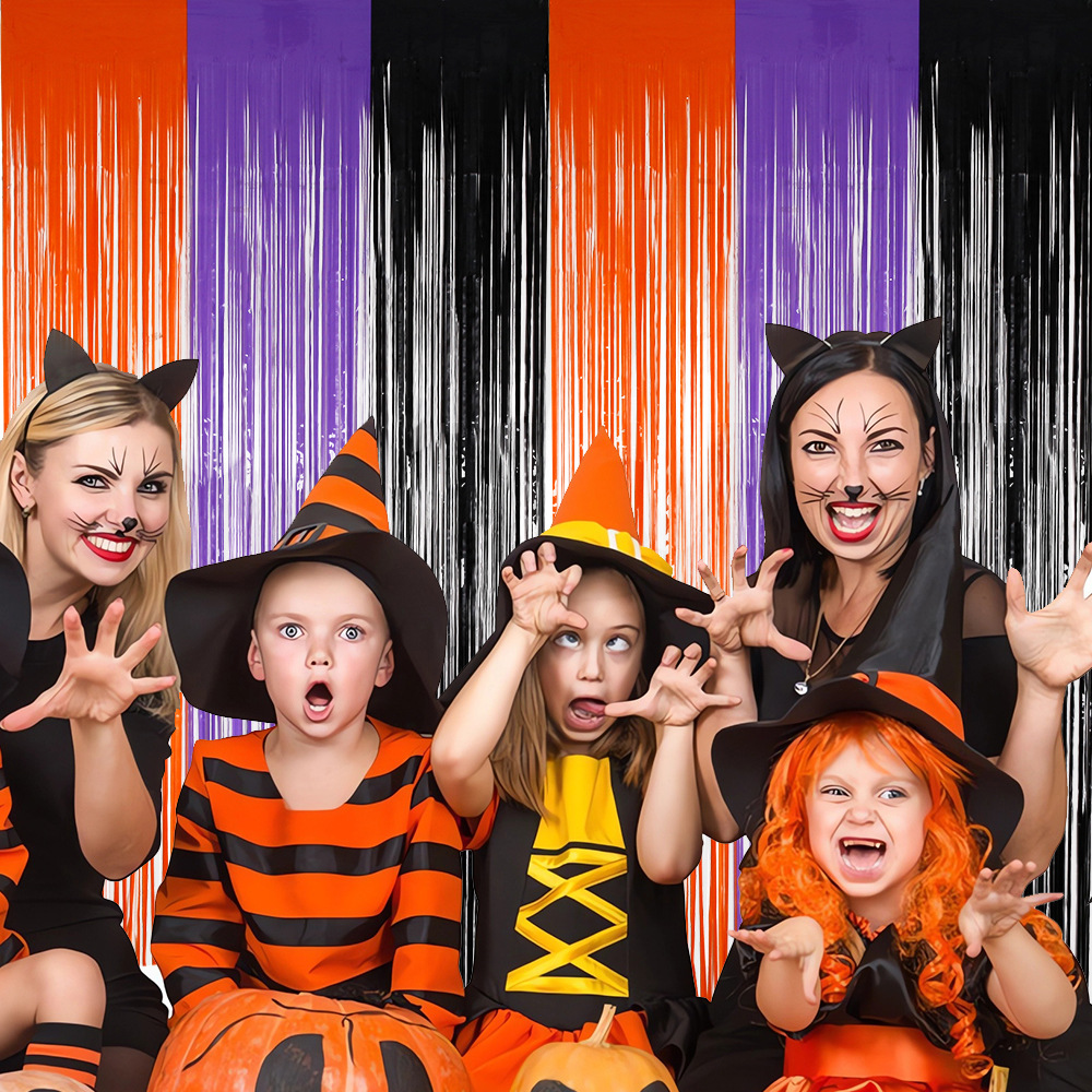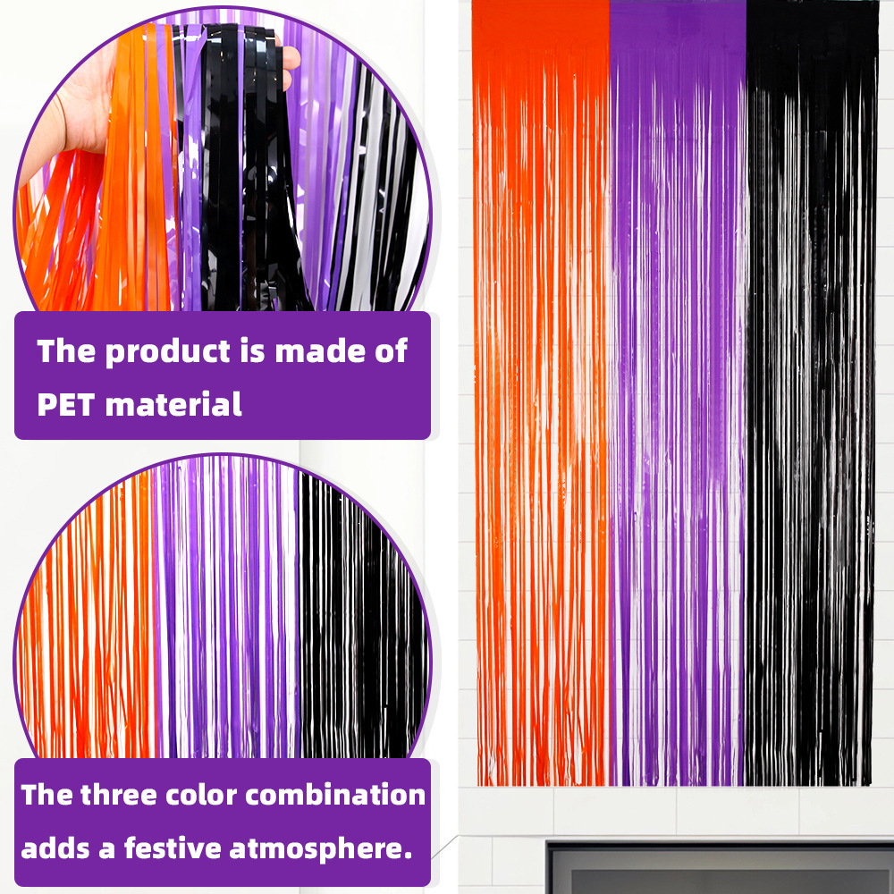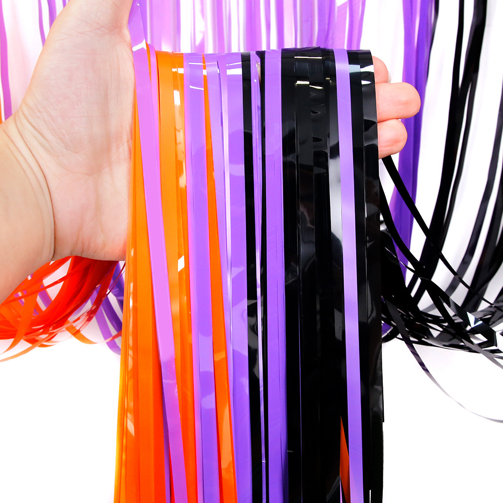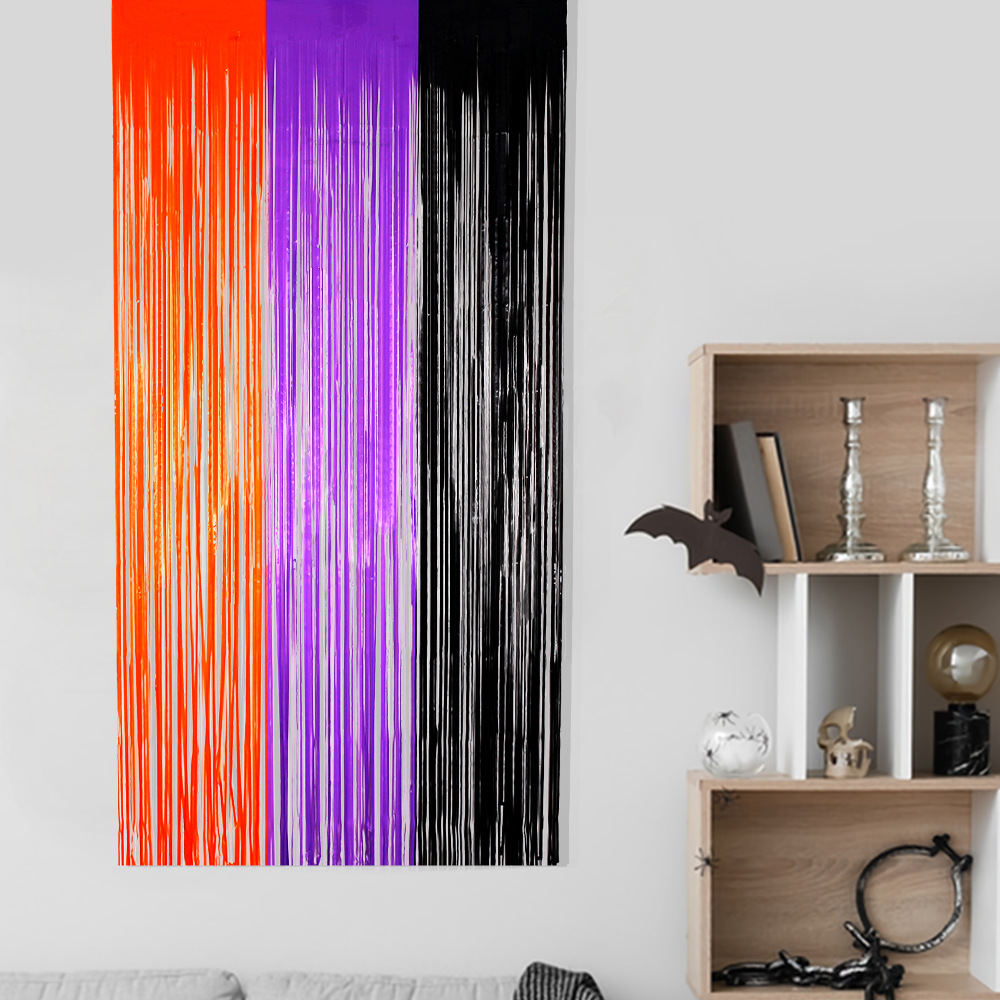 1*2.5m orange purple black tinsel curtain