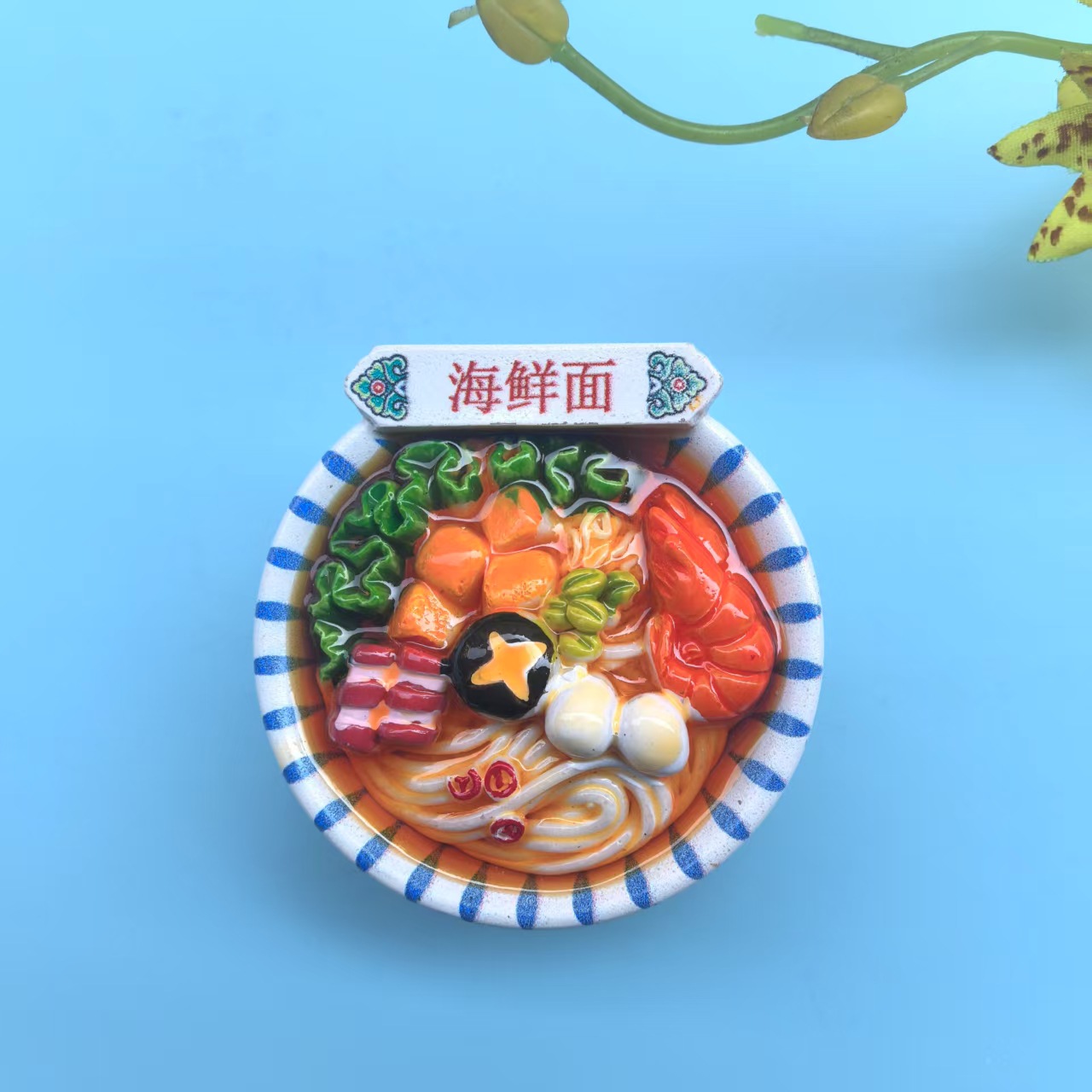 blue and white porcelain seafood noodles