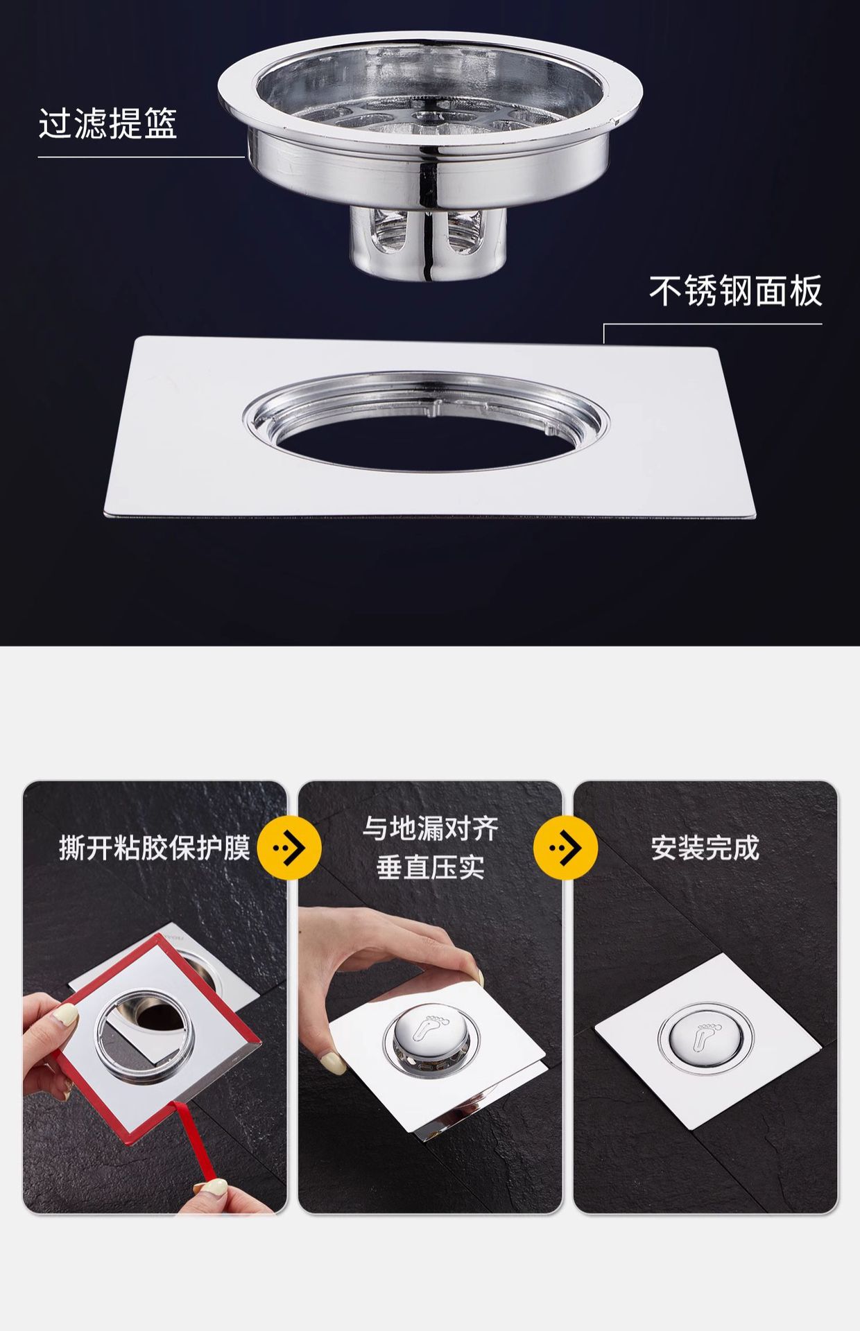 foot drain [stainless steel door panel/plastic core]]
