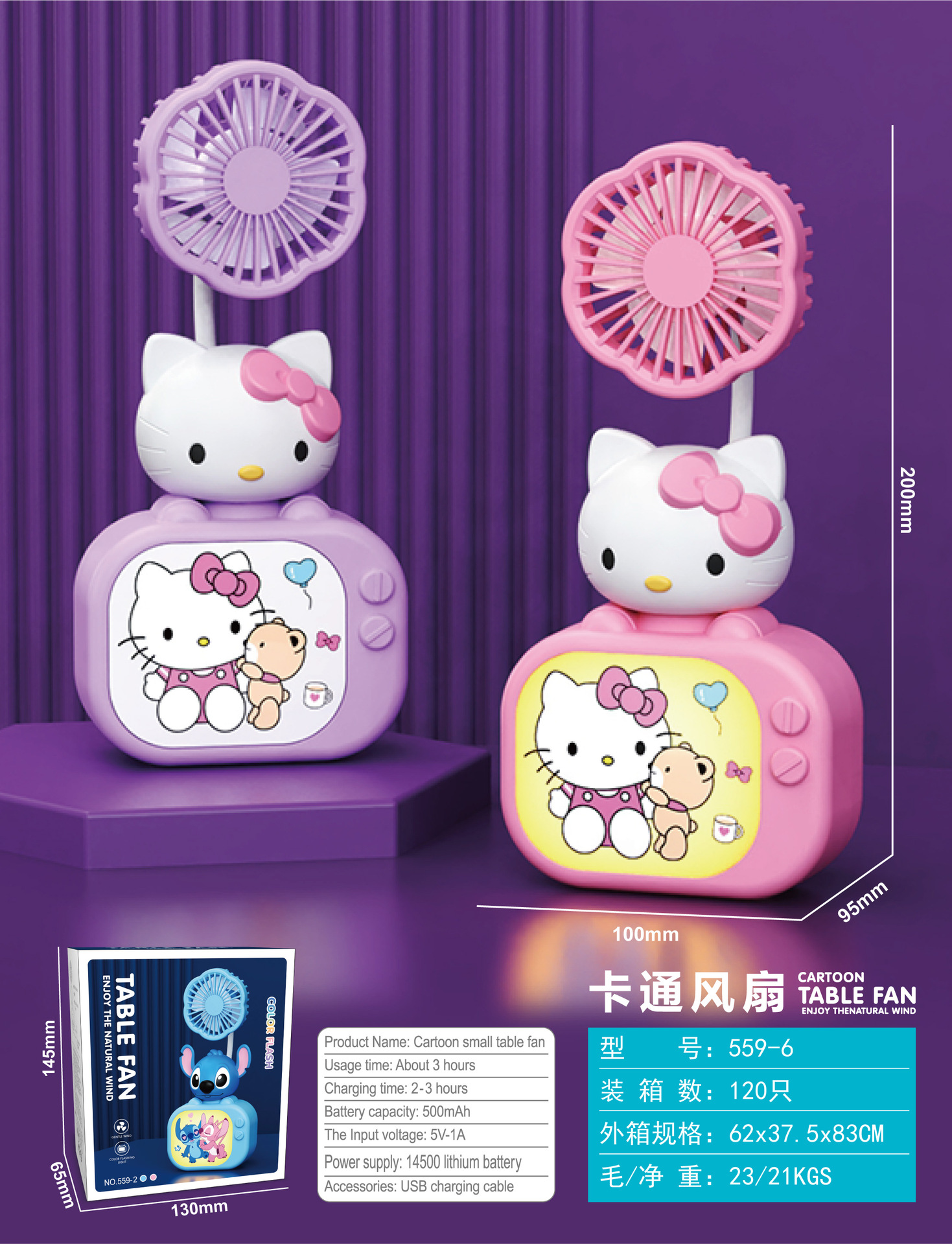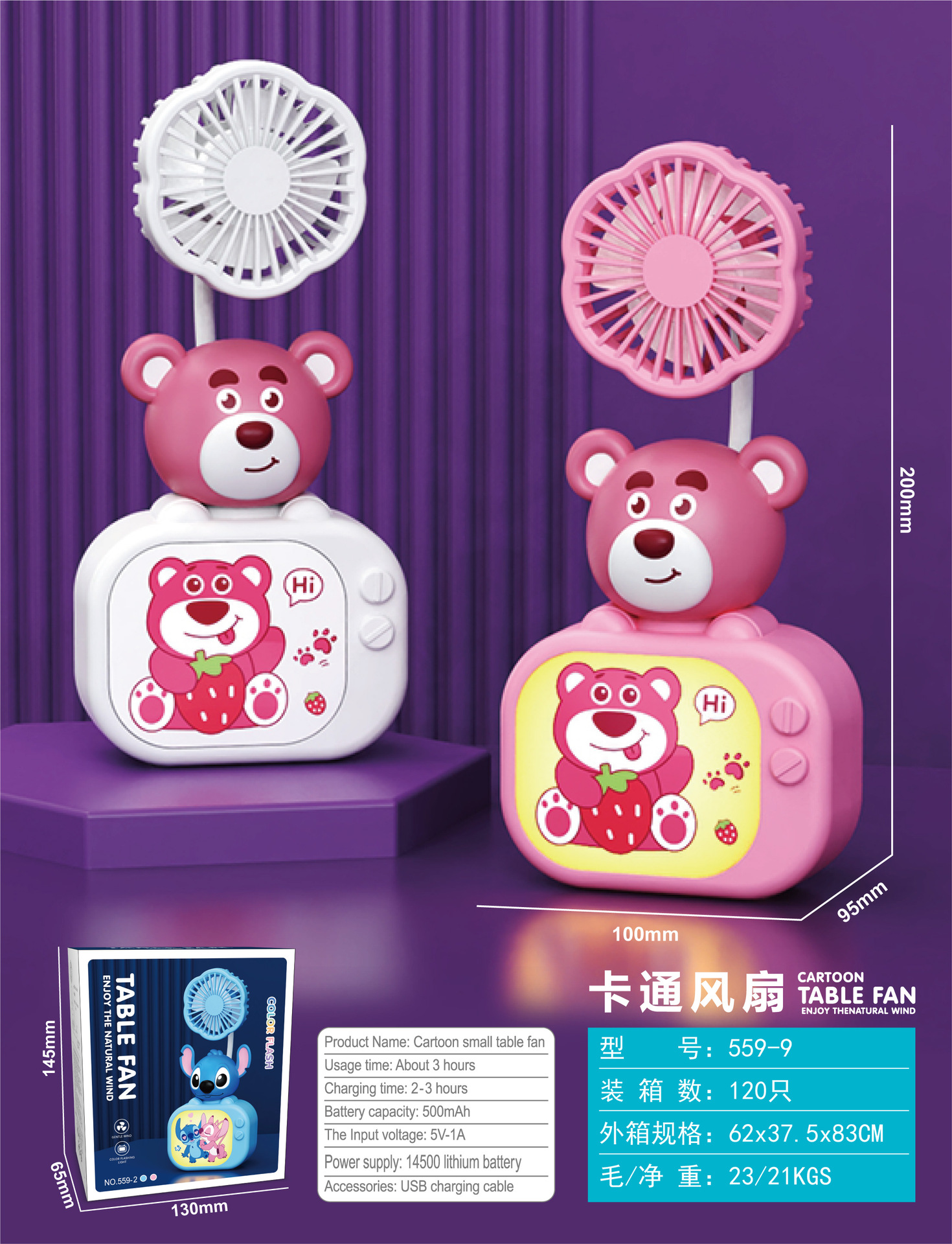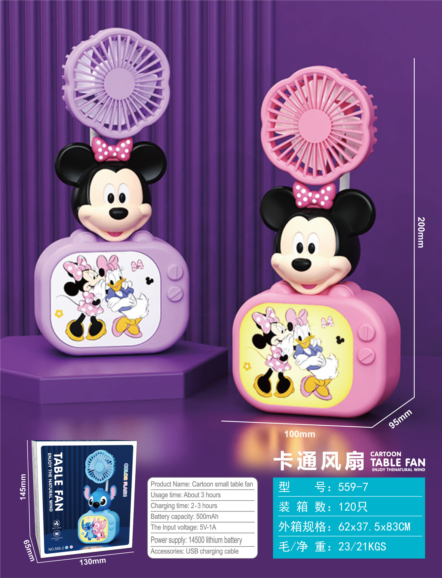 Cartoon TV Mini Fan with 3-speed Lighting