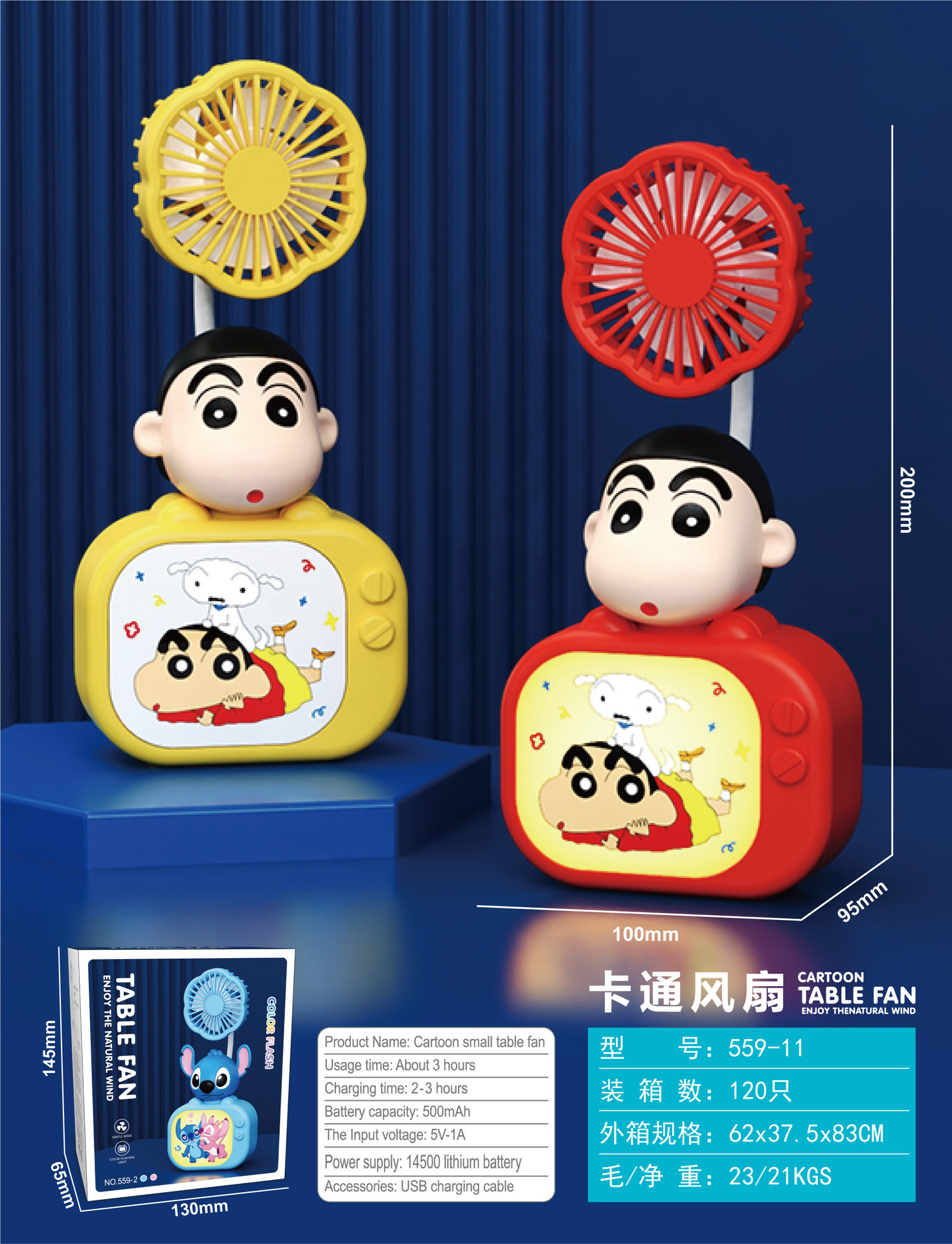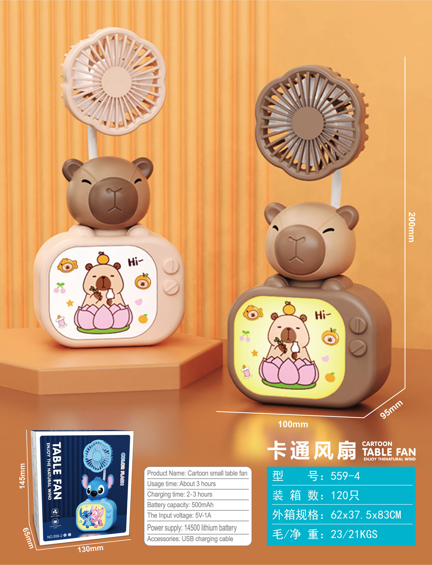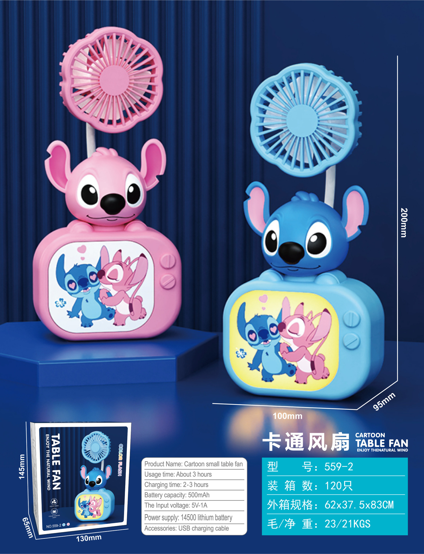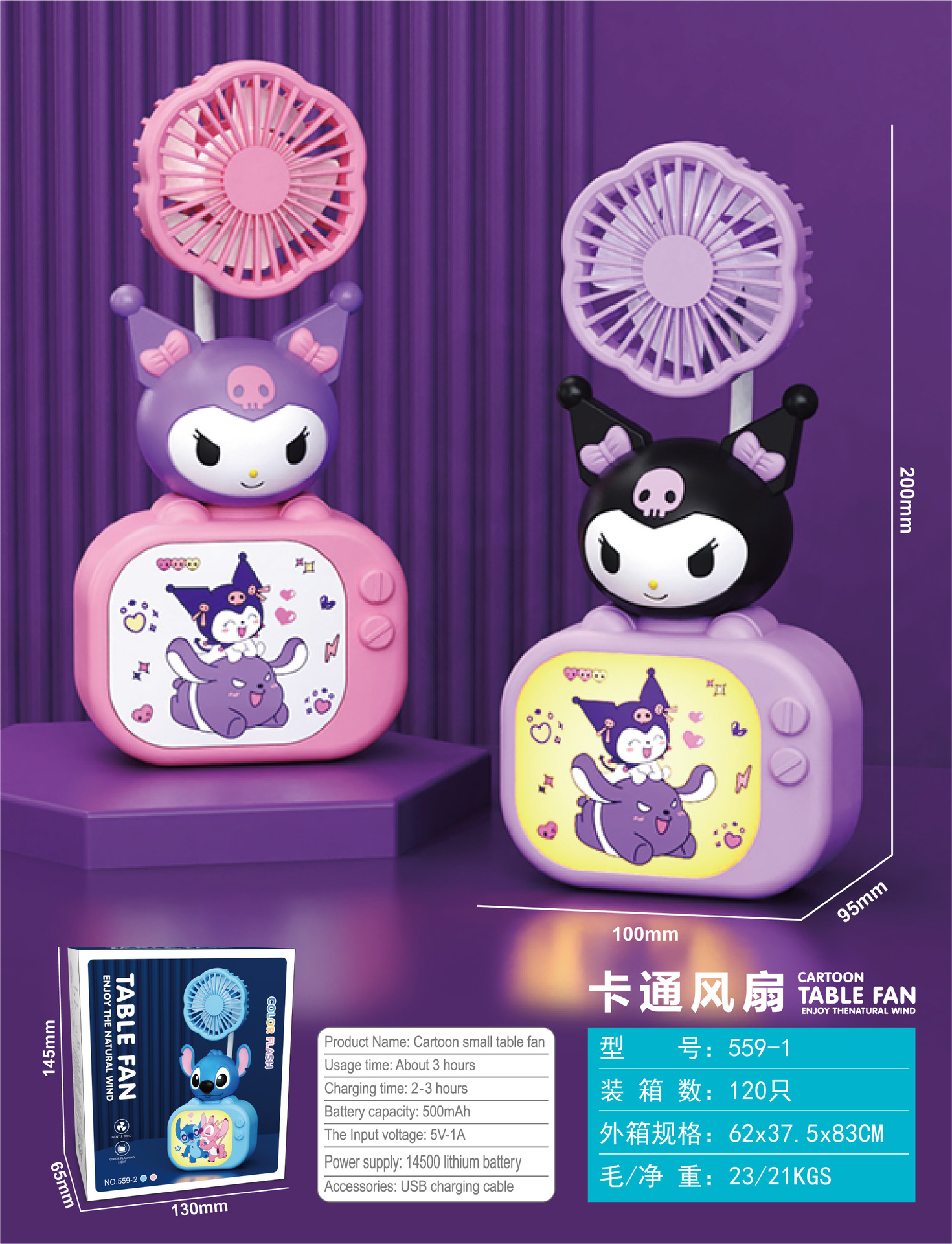 Cartoon TV Mini Fan with 3-speed Lighting