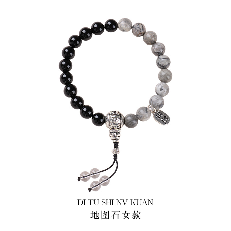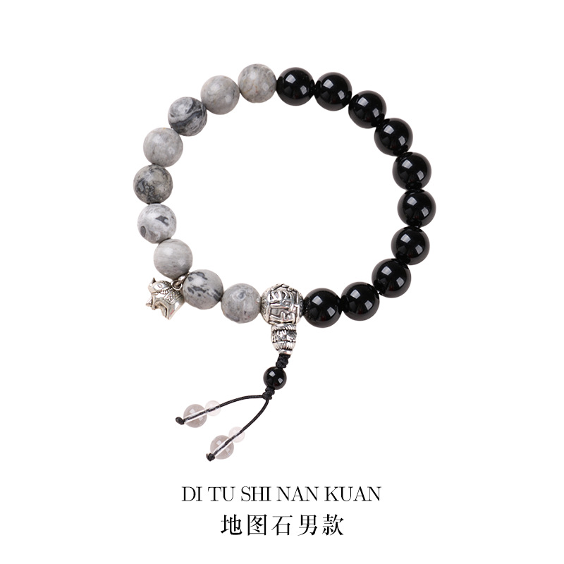 | Name | Couple's Style Black Agate Map Stone Bracelet - Blessings and Good Luck