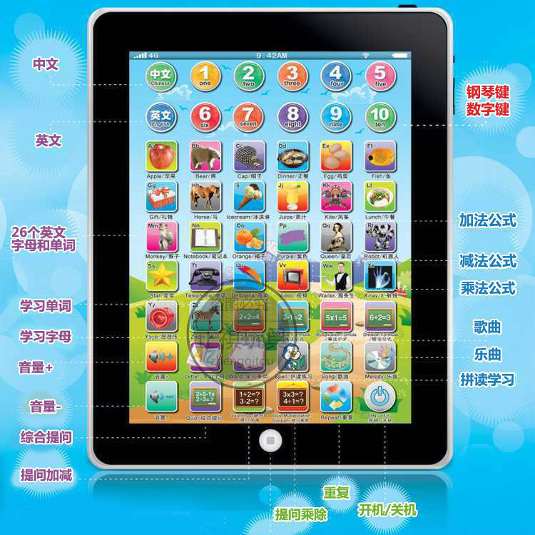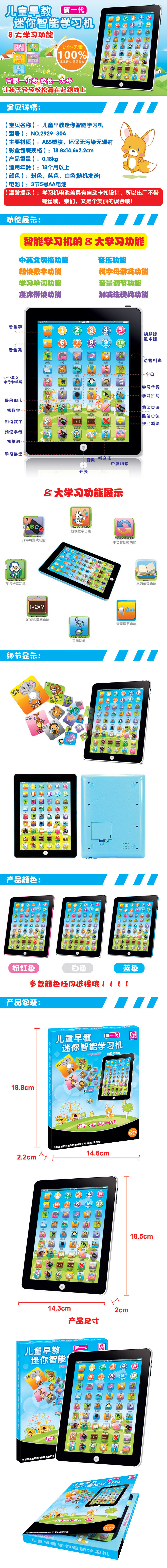 【宝贝名称】JUN MAO中英文儿童启蒙益智平板早教点读学习机