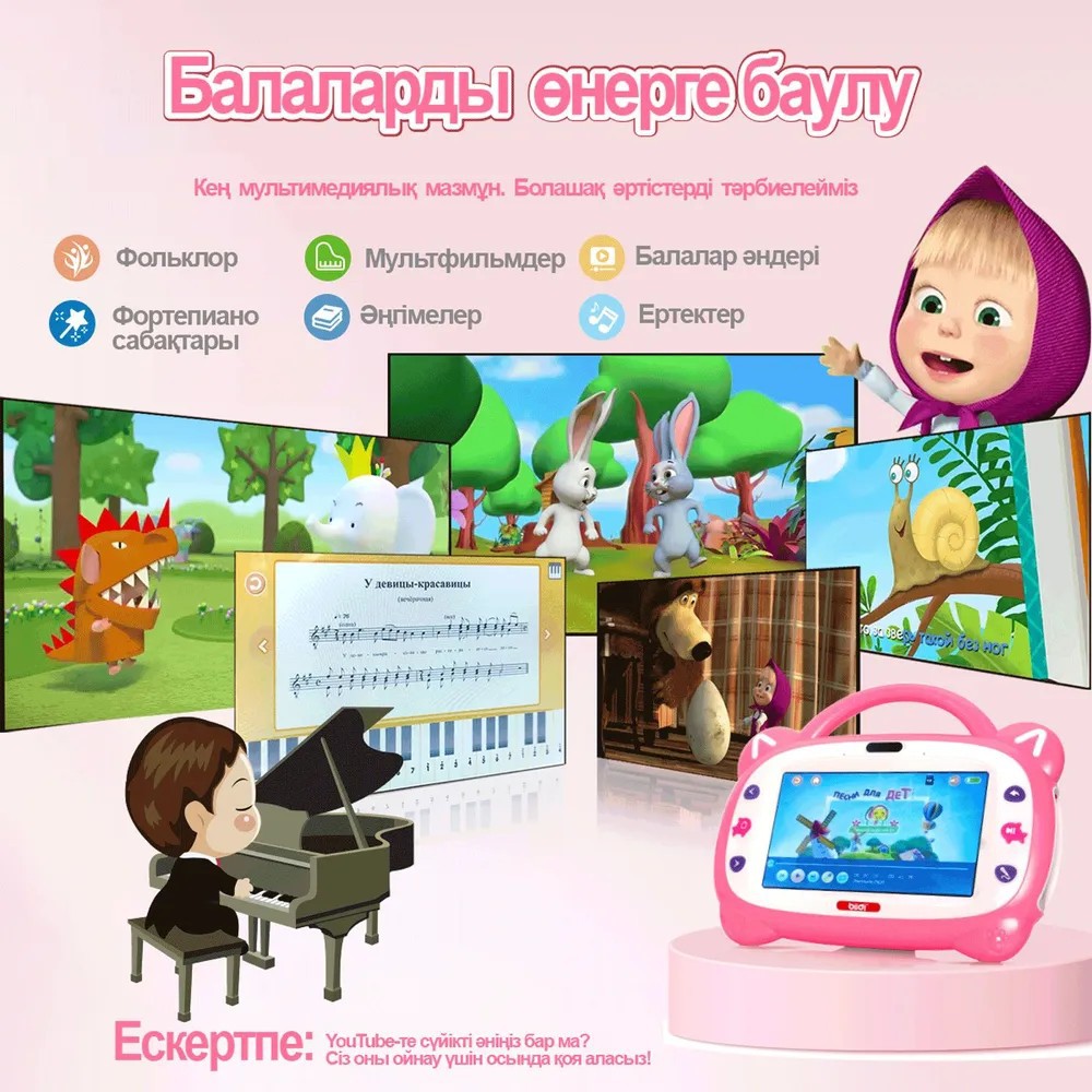 The best gift for the future stars: the 'Catsasha' children's tablet early education toy. This children's tablet early education toy is designed for children aged 3 to 8. The early education machine has already downloaded content, and parents can use all functions immediately upon receipt without downloading any software. What is Catsasha the toy doing? 1. Toy development music hearing, creativity and performance skills, making it an excellent helper for family gatherings. 2. Rich multimedia content. Catsasha pre-loaded a large number of resources, including: stories, children's songs, stories, cartoons, etc. Parents can also download their favorite songs, stories, and cartoons. 3. Your child will be able to learn Russian letters, words, numbers, colors, etc.Cultivate children's observation, thinking, comparative analysis and spatial perception. Cat Sasha can teach your child to identify the written and handwritten forms of each letter, and teach them to write in the correct order. Sasha the Cat uses Montessori methods to learn words and grammar in 15 categories: animals, transportation, vegetables and fruits, sports, etc. Different from traditional card learning, cards need parents to read words, Sasha the Cat can pronounce words, and children can repeat words and self-study. Buying a preschool machine is equivalent to buying more than 20 sets of learning cards containing more than 1,000 themes. Sasha the Cat is a video player, interactive karaoke toy, and interactive electronic piano. Sasha the Cat has many other functions, this child development toy will bring a lot of happiness to children and parents! A good gift for boys and girls for the New Year, birthday, Children's Day!
