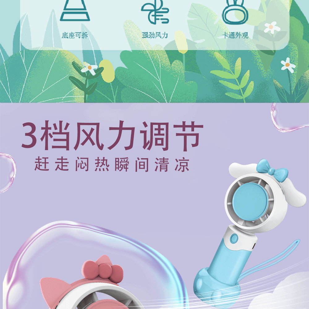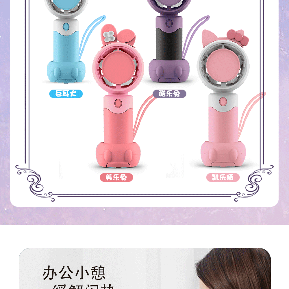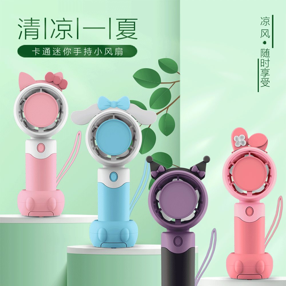 new cartoon small handheld fan continuous usb charging outdoor portable large wind desktop mini fan wholesale